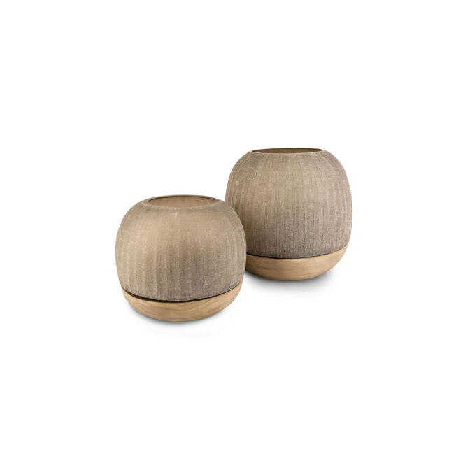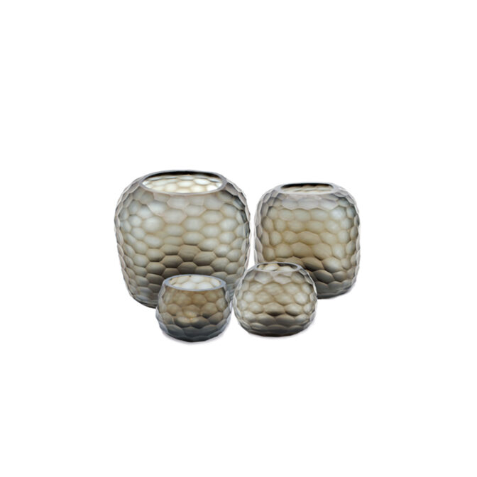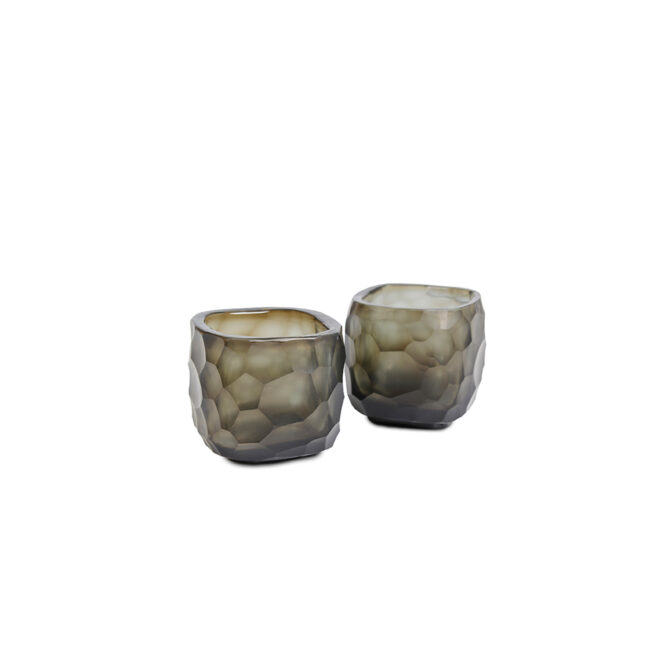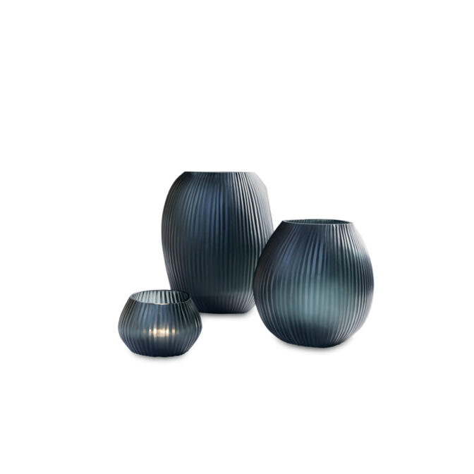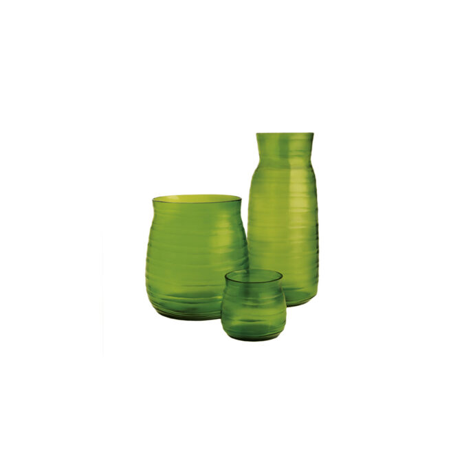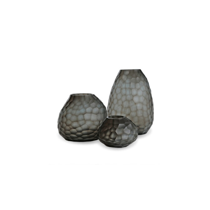 over centuries. Each piece shows the variable traces of human work on its surface, creating interplay between sculptural form and texture. More specifically, the design of glass objects combines these aspects with a nuanced and strong color impression, leading to a smooth and natural appearance. This allows them to integrate well into any architecture, while remaining something special and magic at the same time.