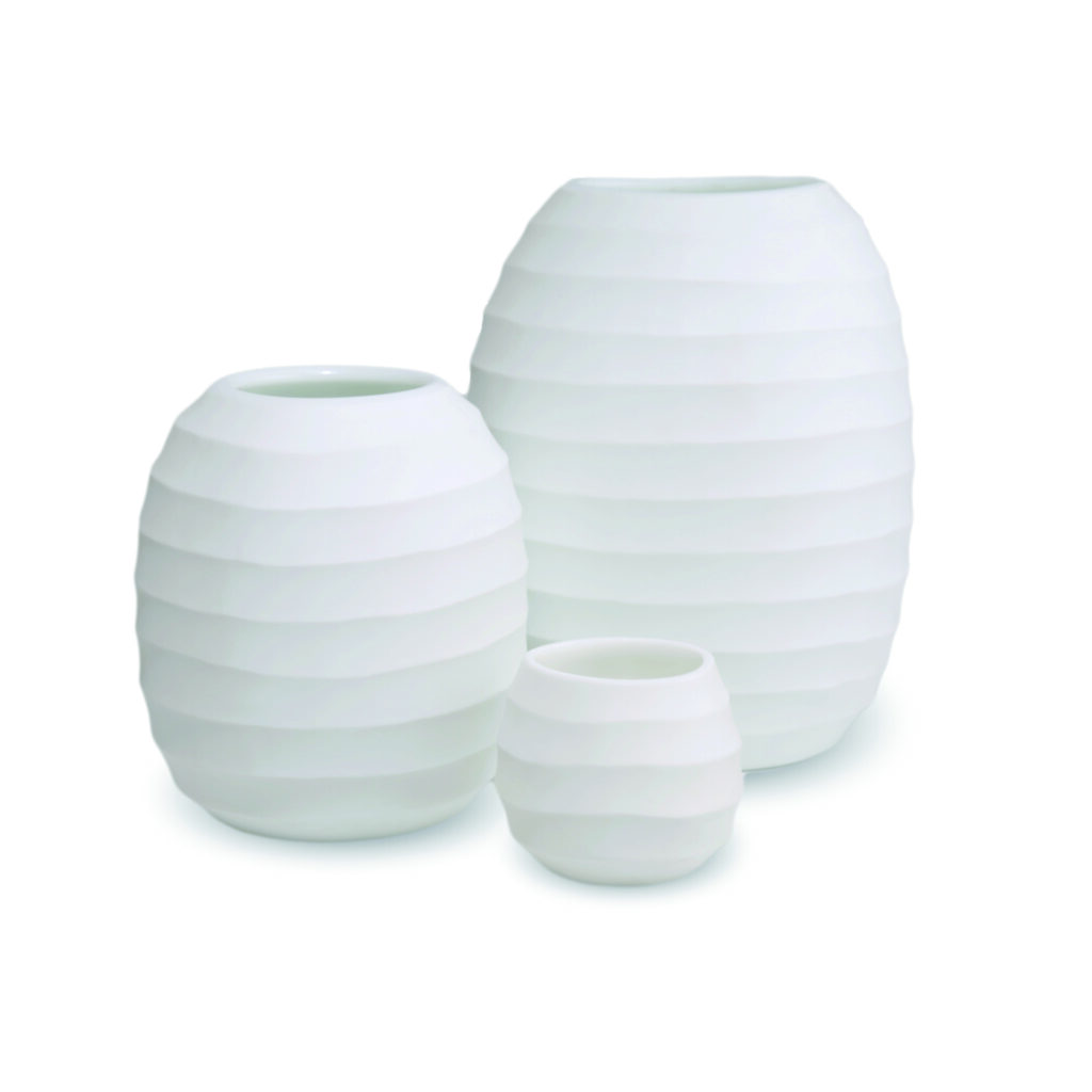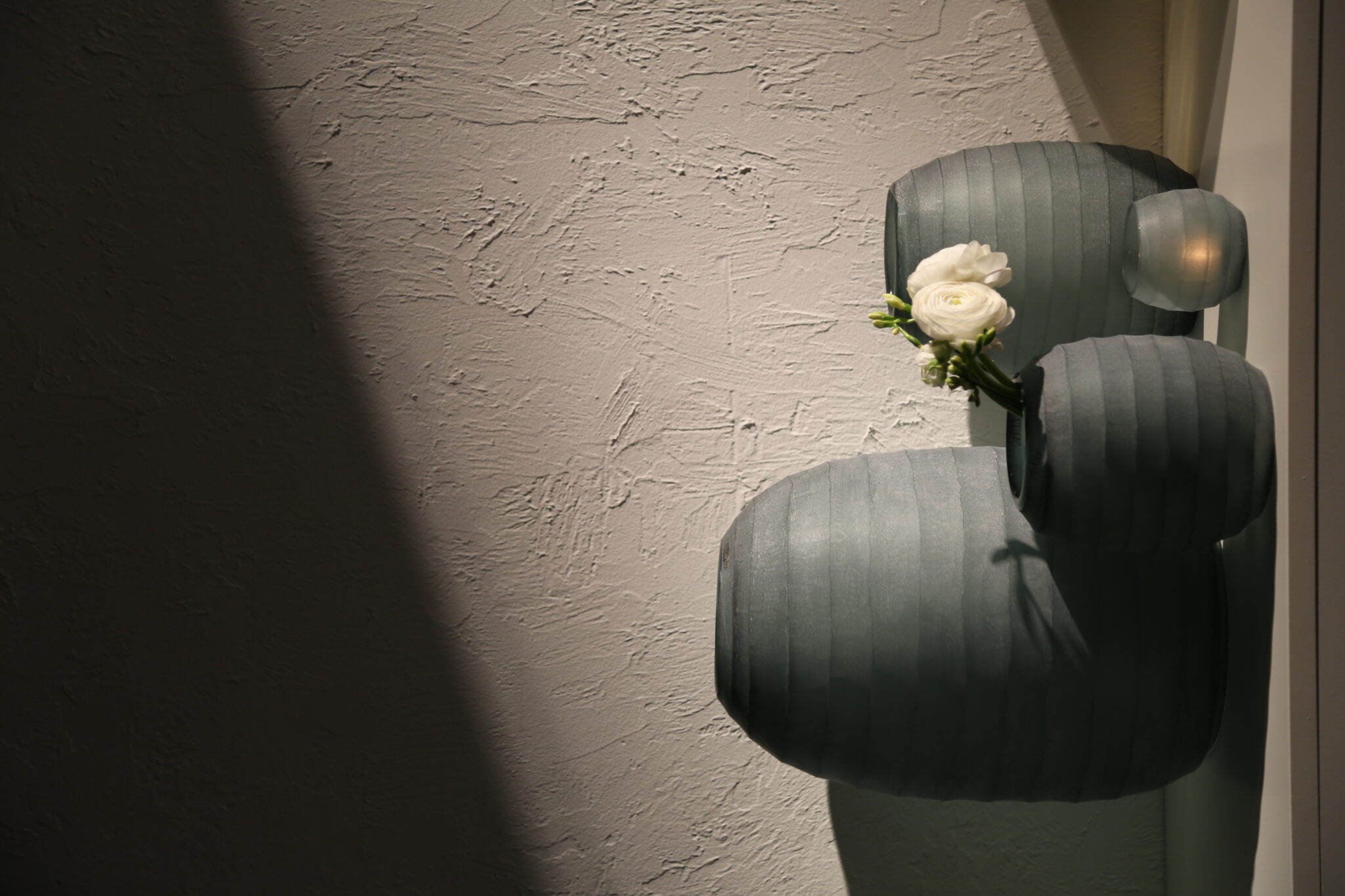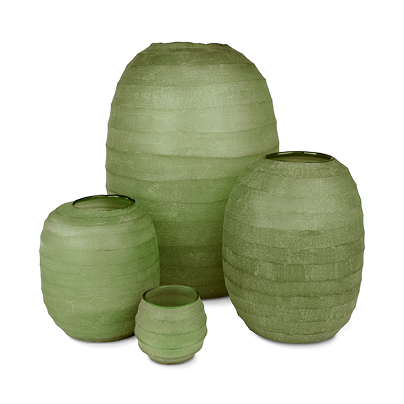 over centuries. Each piece shows the variable traces of human work on its surface, creating interplay between sculptural form and texture. More specifically, the design of glass objects combines these aspects with a nuanced and strong color impression, leading to a smooth and natural appearance. This allows them to integrate well into any architecture, while remaining something special and magic at the same time.