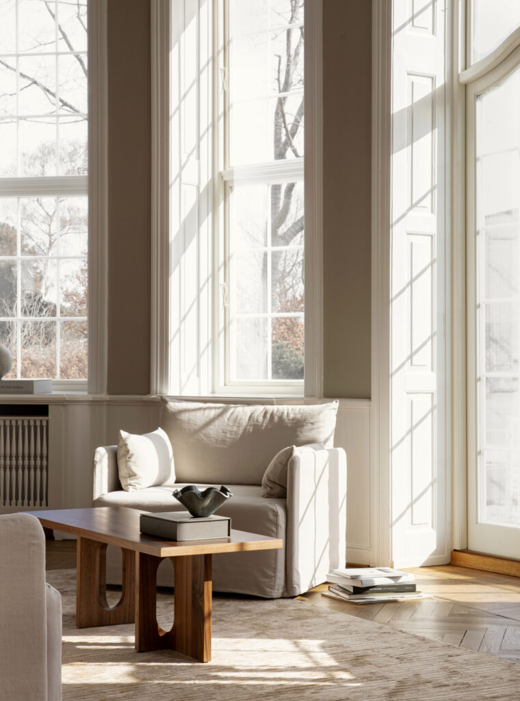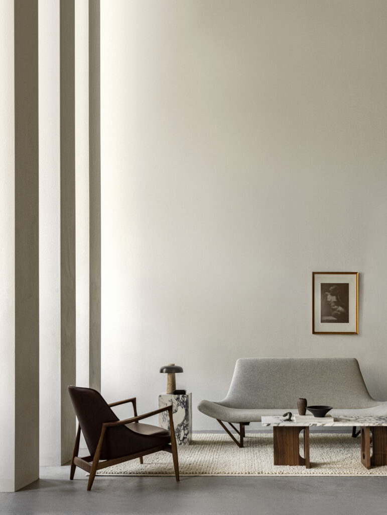 Originally developed by Norwegian architect and designer Danielle Siggerud as a modern and versatile table for MENU’s former showroom café, the Androgyne Collection profiles simple silhouettes and refined materials. Celebrating craftsmanship and wood, the Androgyne Lounge Table is versioned in natural or dark stained oak or walnut, as well as with the option of a Kunis breccia stone or calacatta viola marble tabletop. With a shape and function made for everyday settings, the versatile, modernist design makes it possible to use as both a lounge table or bench for piles of books or statement decorations.
