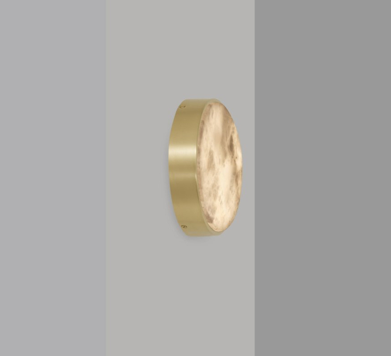 Inspired by the linear plains of the Flemish landscape, the ANVERS collection embodies the low-lying profile of the terrain with its refined silhouette, whilst creating maximum impact through its exquisite disc of natural alabaster stone. The translucent disc of honed alabaster is encased within solid brass, creating a pure and elegant piece. The natural striations within the alabaster, produce an individual and distinctive feature.