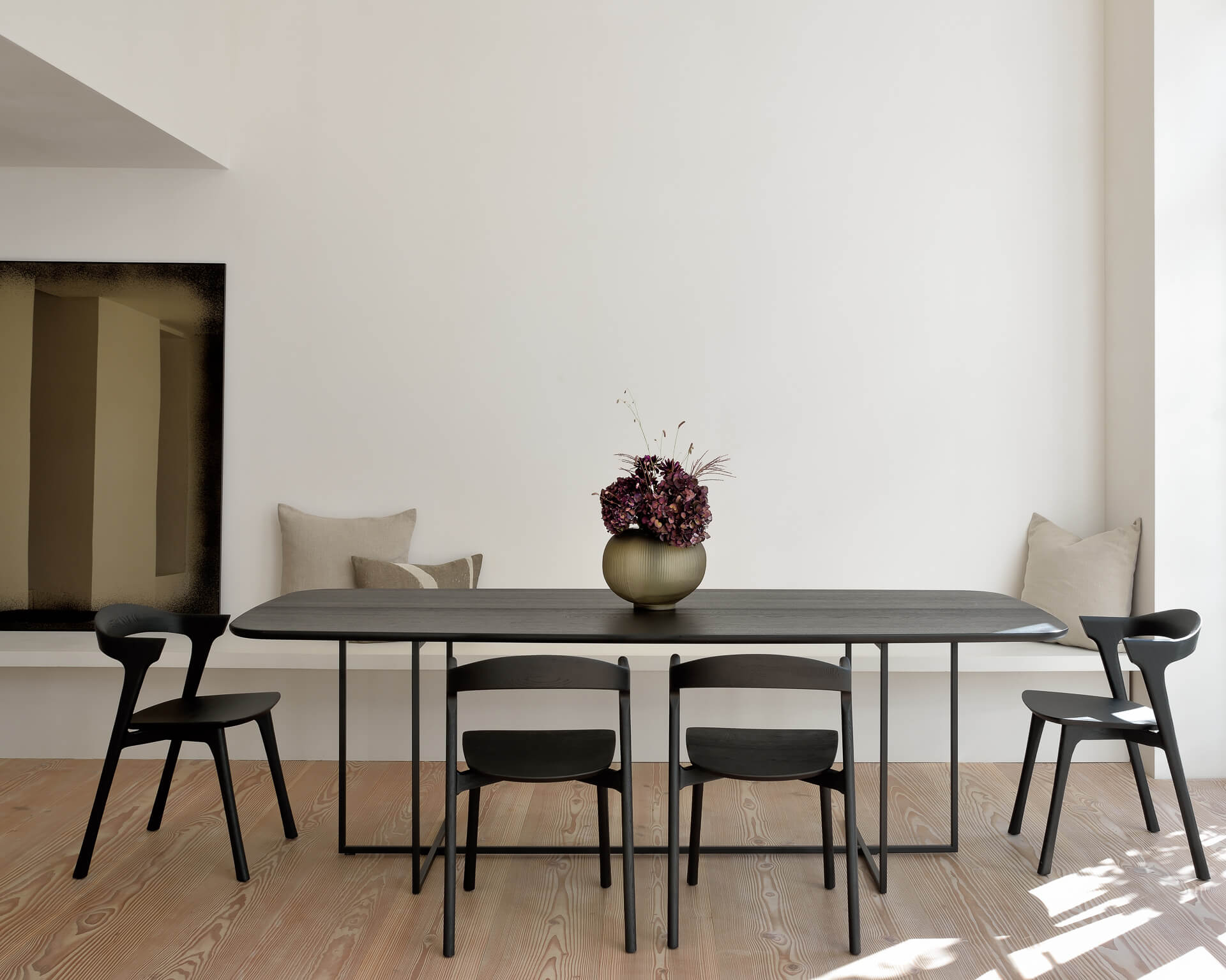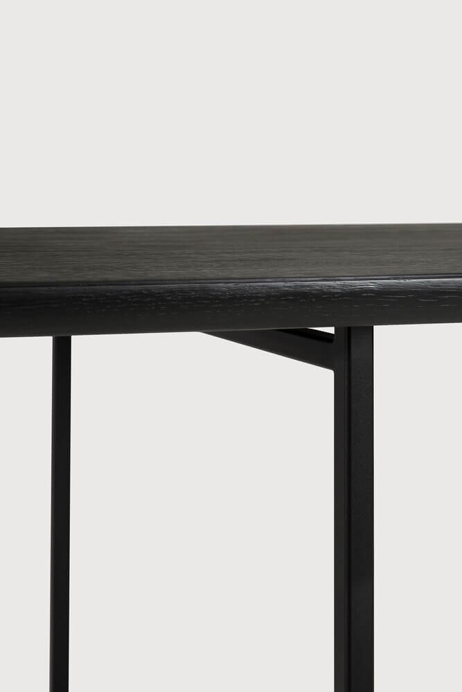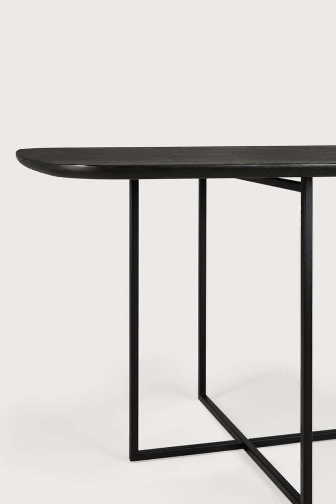 Come together for work or pleasure with the Oak Arc dining table. Combining a tapered black metal legbase against a brushed black Oak finish, the Arc’s design is a refined form featuring a unique light ambience and slightly rounded tabletop. A contemporary masterpiece by Alain Van Havre.