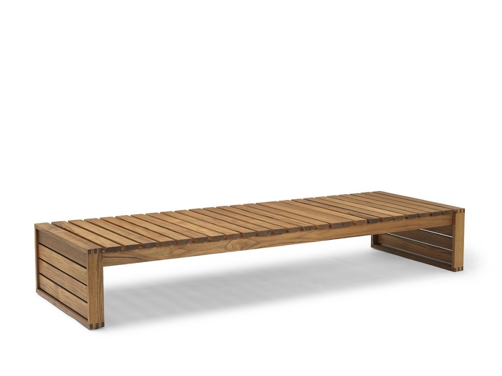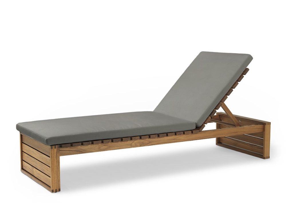 Contemporary and intricately designed to exhibit expert craftsmanship, the elegant BK14 Sunbed is part of the iconic indoor-outdoor series by Danish architect Bodil Kjær. Sleek, streamlined and boasting the utmost comfort, its oiled teak frame patinates over time, resulting in a unique aesthetic that adapts to its natural surroundings. As with the rest of the collection, the sunbed’s construction has a simple geometric quality that can be complemented with an optional cushion, upholstered in weather-resistant Sunbrella fabric. Perfectly utilised as a resting place in the garden or adjusted to embrace the glorious summer weather, the BK14 Sunbed is the ideal addition to any outdoor space.