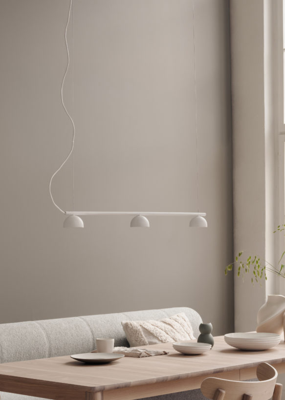 Designed to inspire and improve everyday tasks and activities, the Blush Rail pendant lamp will transform the lighting in your home from just one system. Created by Norwegian duo Morten & Jonas, its striking look will take centre stage without hogging the limelight, adding a pool of warm light over a dining table or kitchen island, as well as bringing a welcoming atmosphere to a dark hallway or lobby. Made from powder coated steel tube and available in selected colours, the Blush Rail pendant lamp is integrated with a set of either three or five small opal acrylic diffusers which are all connected together for easy installation.