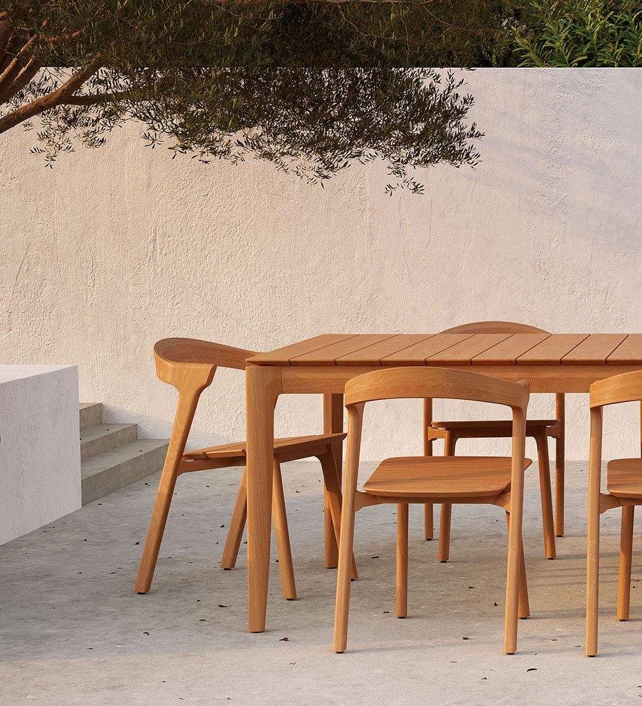 A signature Ethnicraft design, Alain van Havre’s iconic Bok dining chair now makes its way into the open air. Bring structural elegance and contemporary craftsmanship to your outdoor lifestyle.