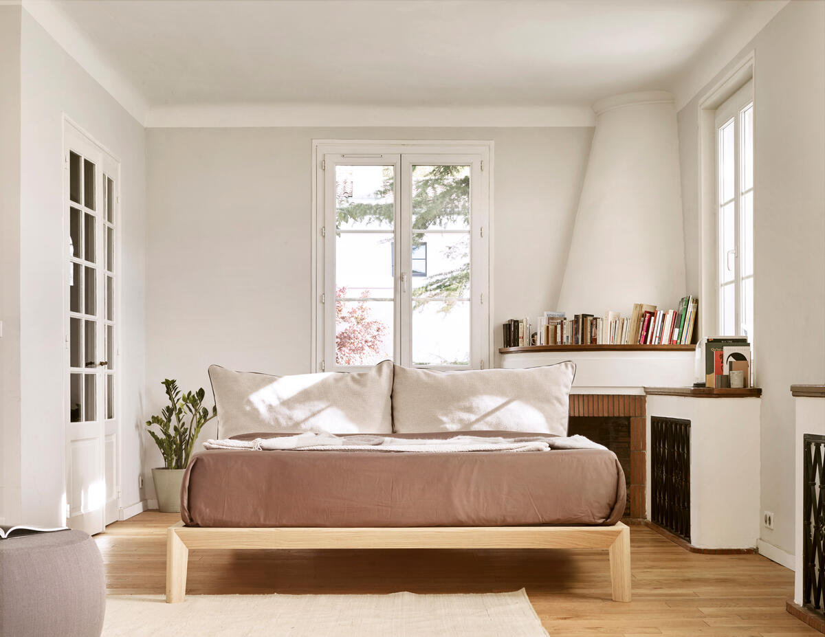 The Bora bed radiates comfort from every corner. It invites you to stretch out on it and read, resting on soft cushions, or to just lie back and rest, drifting into peaceful dreams. The cushion covers are removeable and there is a range of fabric and leather options. For the frame, you can select any of the woods from the Treku range.