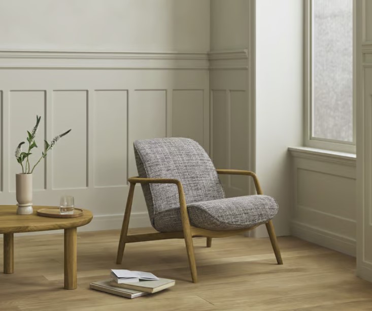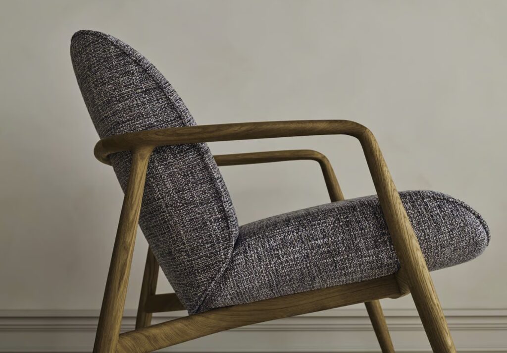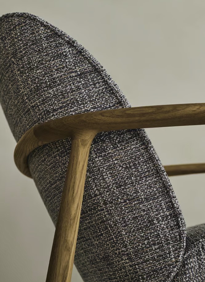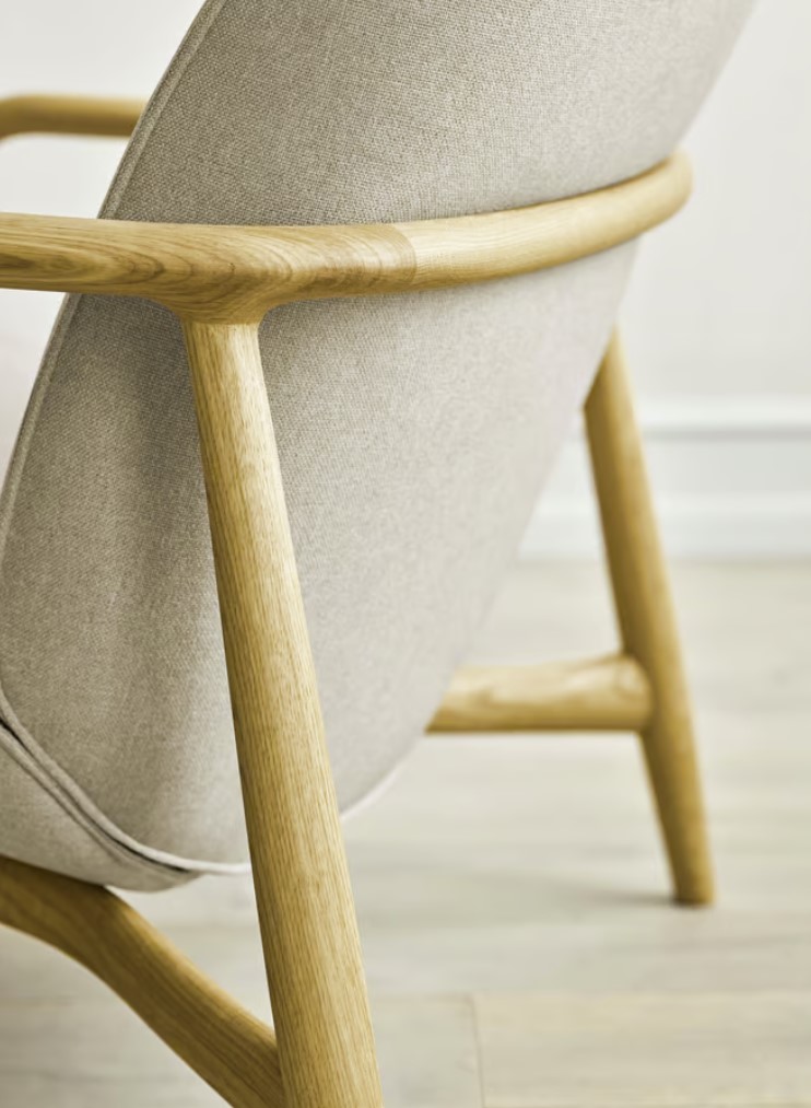 Designed by Italian design studio Skrivo and influenced by mid-century Scandinavian design. A sophisticated armchair characterised by a luxurious oak frame that seamlessly widens from leg into armrest, gently embracing the seat. Handcrafted with a combination of traditional and modern woodworking techniques which lend a contemporary aesthetic to the design. The plush seat and backrest are upholstered in your choice of fabric or traceable leathers.