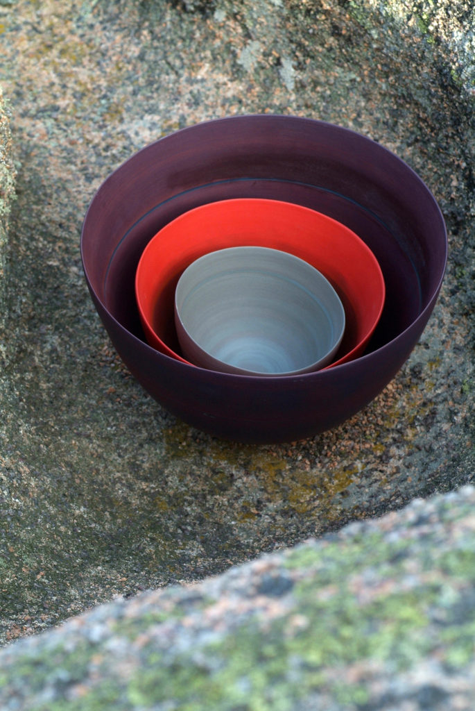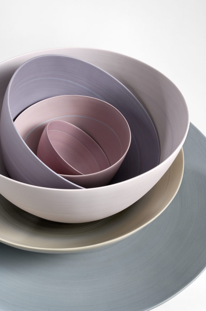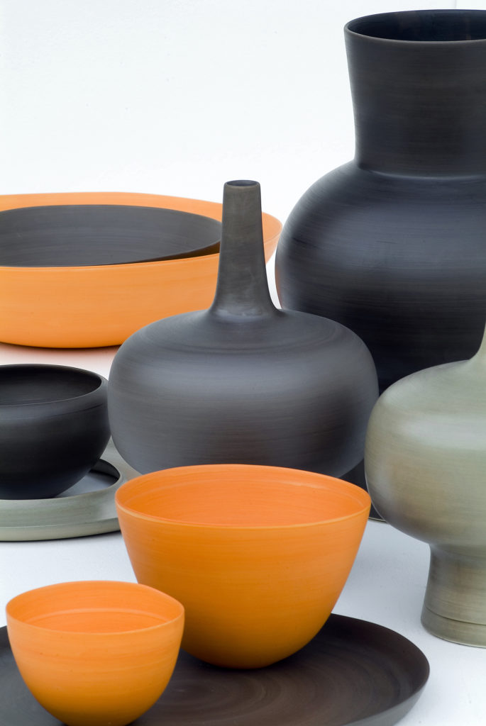 Since 1980, Rina Menardi has been developing her research in the field of ceramics, personalizing work techniques, exploring color schemes, and striving for neatness of shape. Through this work, she has been creating her first collection of living accessories, all hand-made stoneware pieces, always characterized by simple lines, inspired by nature, removed from the style of so many mass-produced items, and never limited to a single purpose, believing, as she does, that an object should not impose itself, but rather suggest visual and tactile sensations able to evoke our deepest emotions. Rina molds the clay without ever feeling like a tout-court ceramist. She chooses baked clay because she senses in this material the possibility to express herself through gaining possession of some of nature’s secrets, understanding her laws, and respecting her rules and limitations.