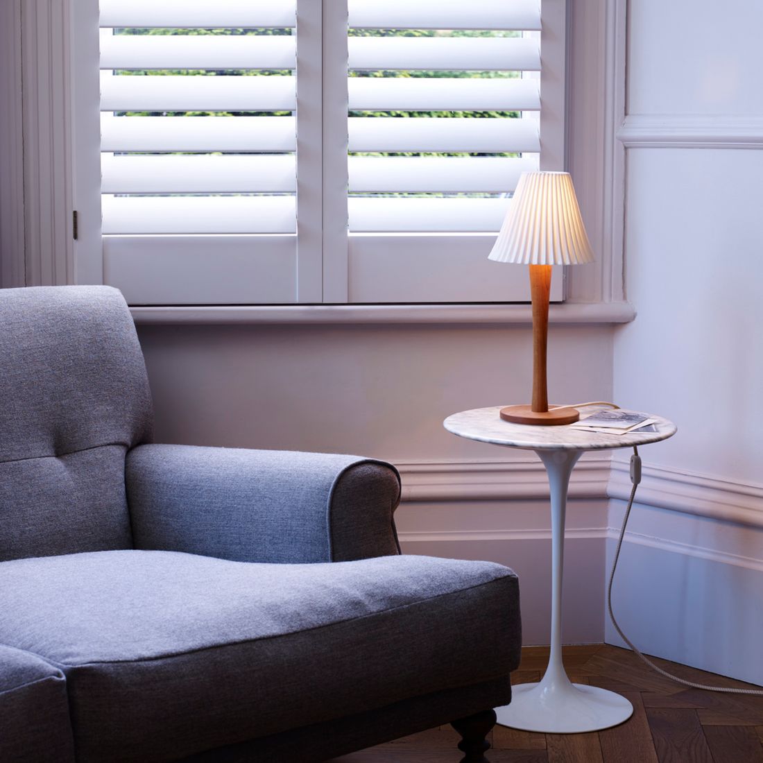 Using Original BTC’s trademark of blending the finest materials, the Cecil Table Lights exude quality and simple sophistication. Choose between a narrow or cone shaped wooden stem, in a range of beautiful wooden finishes-cherry, walnut or oak. Each light has an intricate, pleated bone china shade, and sand & taupe braided flex, which complements the wooden base perfectly.