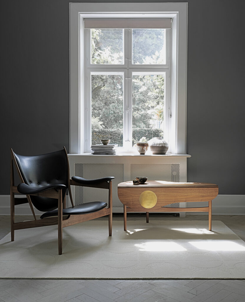 The iconic Chieftain Chair is one of Finn Juhl’s absolute masterpieces, representing the peak of his career as a furniture designer. At its introduction in 1949, the chair marked a renewal of the Danish furniture design tradition. Today, it is perceived as one of the most important exponents of the Danish Modern movement in the US during the 1950s. For this reason, Finn Juhl is often considered the father of Danish Modern. Inspired by modern art, the Chieftain Chair with its organic shapes, liberated itself from traditional Danish furniture design and strict functionalism in both shape, construction and materials. In 2012, the Chieftain Chair won the Danish Design Award, Classic. The jury said in its motivation: ”Today, the Chieftain Chair stands as an inspiration to a new generation of furniture designers and as proof that attention to quality, international calibre and a will to break away from tradition can pave the way to make a difference as a designer”.The Chieftain Chair and Stool are manufactured in walnut and are upholstered in leather.