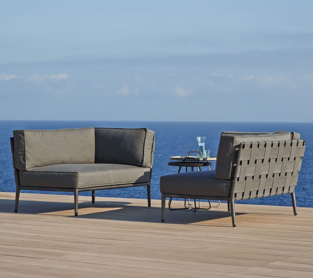 The Conic series are furniture that maintain weather-proof properties. It comes with all-weather cushions that allow rain water to drain through the cushion, and SoftTouch® fabric upholstery enables you to leave your furniture outdoors with minimum maintenance.