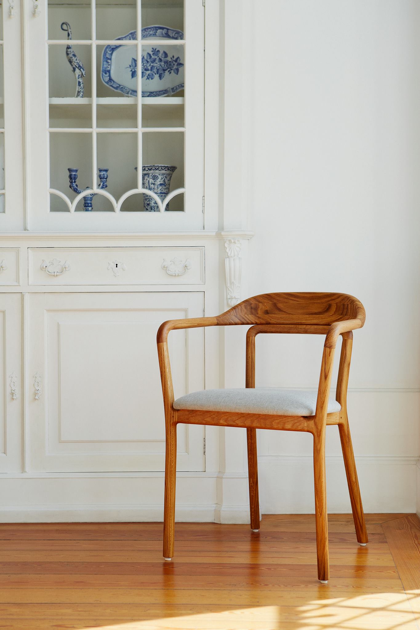 Duet is named for the two flowing lines of timber that form the overall shape of the chair. Originally created as a variation on the classic Thonet bent-wood tradition, the Duet Chair is actually made from a series of carved wood components, joined with mortise and tenon, creating the appearance of continuous curves, while the visible join lines and beautiful grain patterns reveal the chair’s construction. Design: Neri & Hu