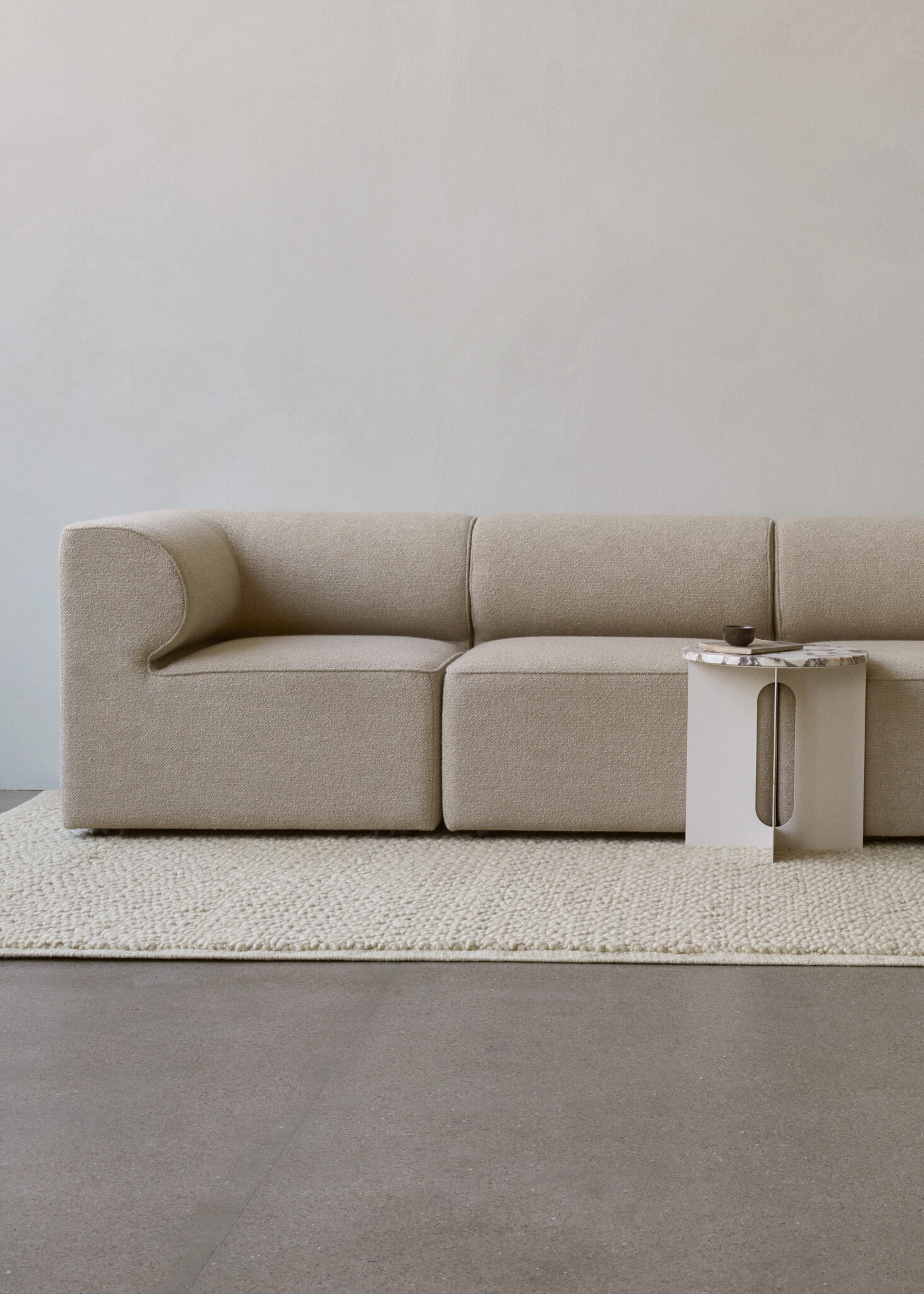 As a new addition, Eave Sofa is now offered in a Modular version, with fixed combinations in 11 variants making it easier to order inspired by architecture Eave Modular Sofa takes its name from “eaves” – the lower edges of the roof that overhang a wall. The sofa’s distinctive detail is its internal “eaves” – curved upholstered armrests that lend the sofa its expressive character. A perfect blend of style and comfort, Eave is a generous sofa that will encourage owners to relax. The seating angle is also ideal for offices or public spaces, enabling the user to sit actively engaging with work. Figure out your own configuration to suit your space.