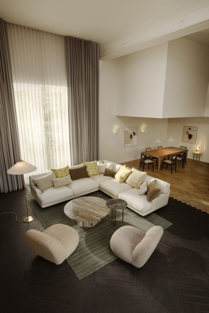 The Flaneur Sofa is a delicate balance of harmonious contrasts – precise shape and complete comfort, indulgent seat and modular flexibility, classic craftsmanship and modern convenience.