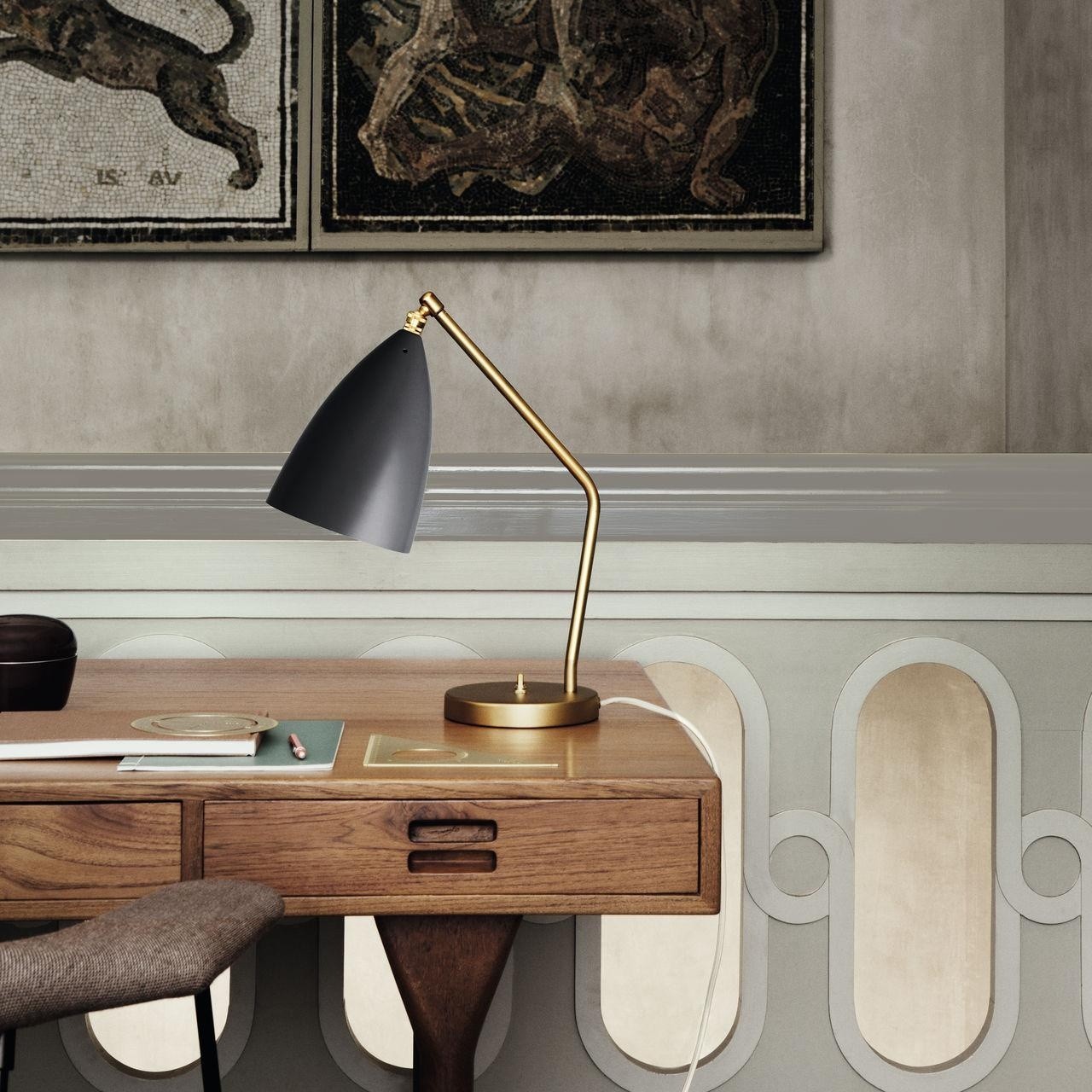 Greta M. Grossman designed the iconic Gräshoppa Table Lamp in 1947 and with its sophisticated yet playful design, it is still as relevant today. The distinctive, elongated conical shade is beautifully combined with a tubular brass stand, a great example of Grossman’s whimsical design language, that is both organic and modern. The Gräshoppa Table Lamp brings not only a perfect, functional addition to the desk but can also be used as a sophisticated light object in any room.