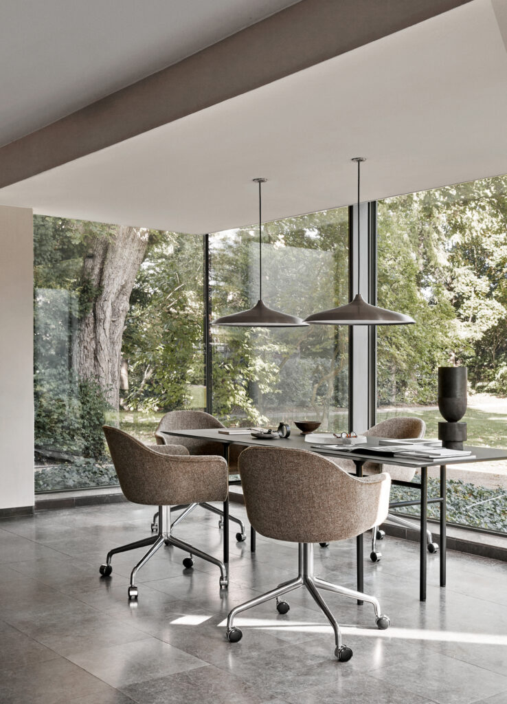 Once you’ve chosen the Harbour Chair shell style that will be cradling and supporting your body, you can now also choose a clover-shaped swivel base so you can spin around as needed – and roll around as wanted, should you opt for caster wheels. The base is available with either swivel or swivels with return options in two finishes – polished aluminum or powder-coated aluminum in black. All Harbour Chairs have been upgraded with extra foam in the seat for better sitting comfort, increasing from 15 mm in thickness to 25 mm. All new Harbour Dining Chairs with a swivel base or swivel with return have been upgraded with QuickClick gliders, as used on all other chairs in our collection. The chairs are delivered with the plastic gliders attached and come with a bag of supplementary felt castors that allow you to easily switch from plastic to felt.