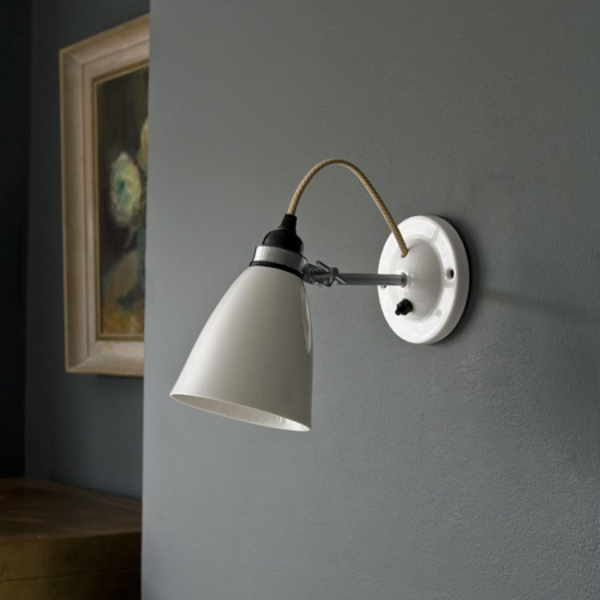 The classic Hector updated for our 30th Anniversary with beautiful satin brass metal work that compliments the bone china wonderfully, adding a further touch of warmth to the Hector range. This is a practical, space-saving wall light that offers a subtle source of ambient light adding a warm inviting feel to the room. Available as a table, floor light and wall light (with and without a switch) with either black or grey braided cable.