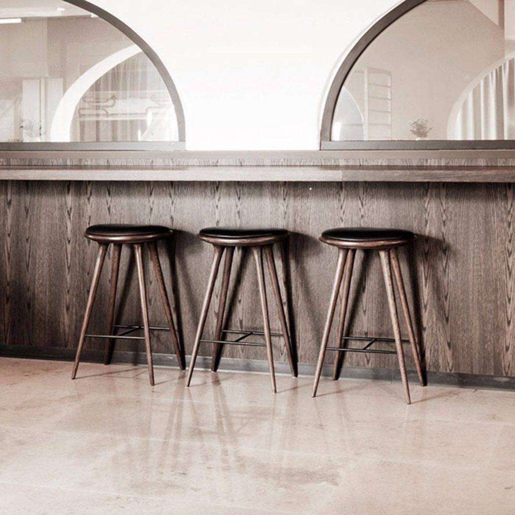 The Mater High Stool is designed by the Danish architect duo Space Copenhagen and is regarded as a New Danish Classic. With its organic yet minimalist style, this bar stool is suitable for both residential and commercial use. The wood is FSC certified – the label for responsible forestry – with a water-based stain. The upholstery is genuine leather.