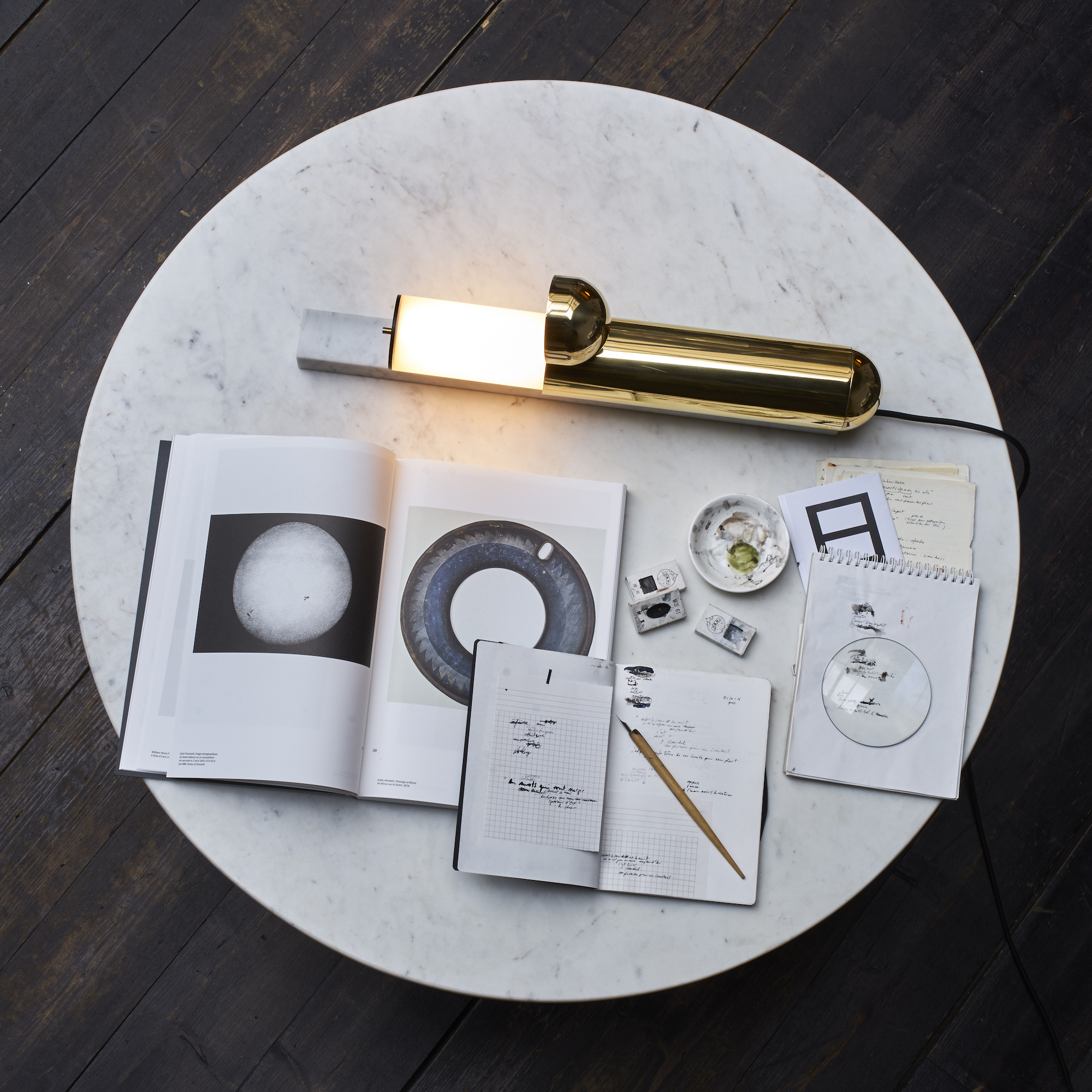 era. It is a resolutely contemporary object. A jewel of a lamp that illuminates a mysterious universe. At the same time it is a mechanical jewel, one that is encased in a simple brass capsule.