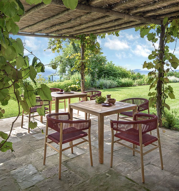 Kilt, the seat designed by Marcello Ziliani, available in versions with a teak or stainless steel structure, is able to express different looks and interpret the space that welcomes it.