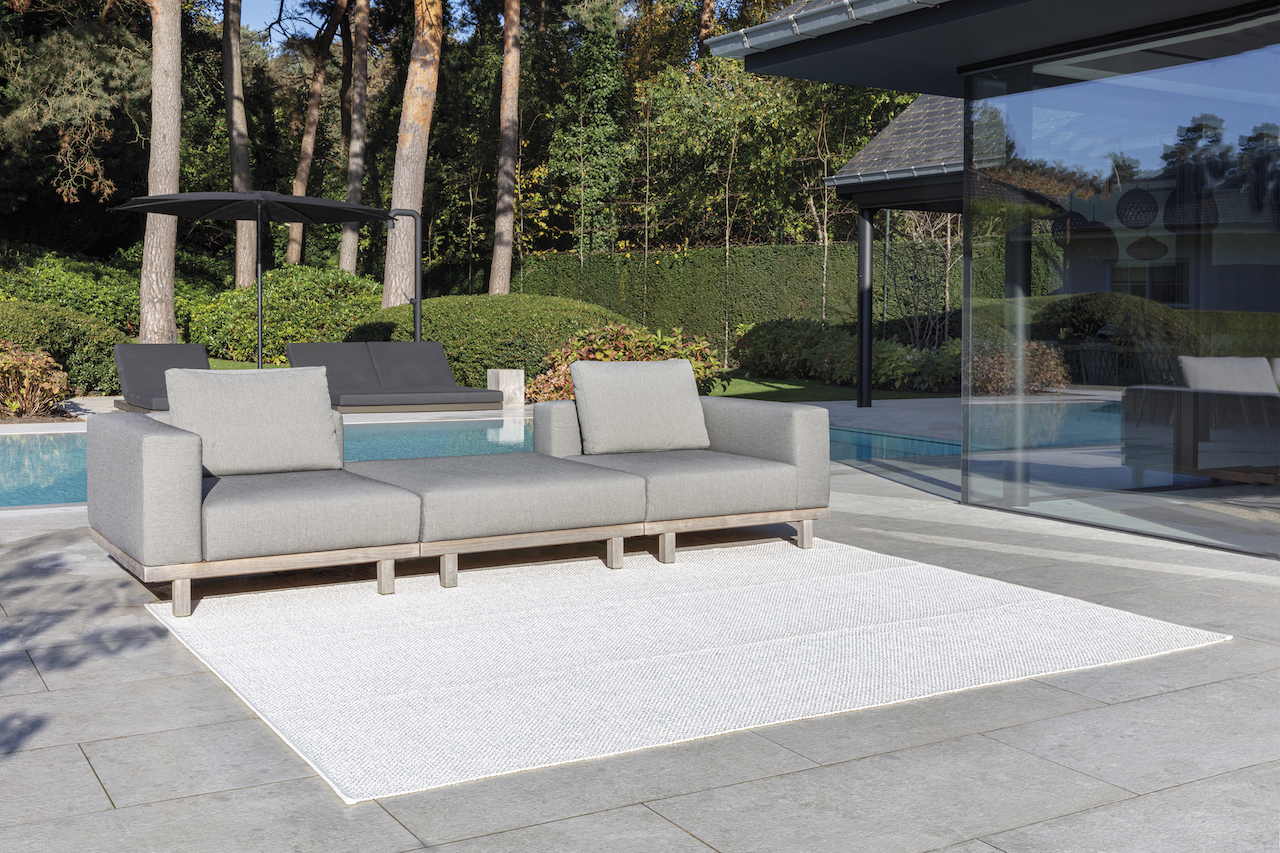 Thanks to its classic weave and simplistic graphic design, the recycled vinyl fibre Laguna collection has a striking natural charm. And the rug is UV resistant and easy to maintain. It’ll genuinely enhance any outdoor seating area!
