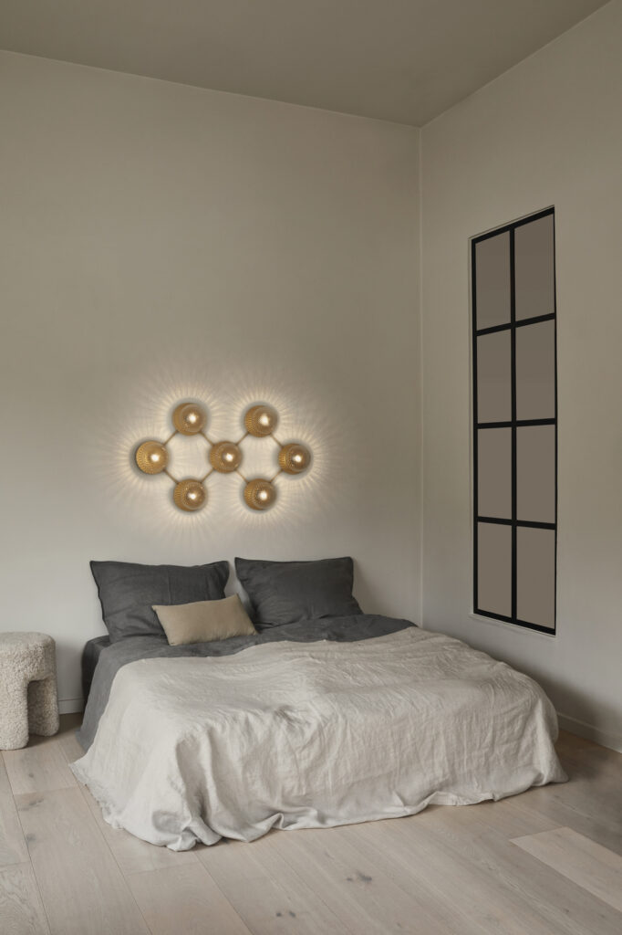 Liila 7 has an elongated modular formation. It looks great as a light sculpture and can be installed vertically or horizontally. Liila 7 is ideal on dining room or lounge walls, as a luminous headboard or on the ceiling of a narrow hall where high-quality lighting is needed. Its modular construction makes it ideal to be grouped into attractive arrangements.