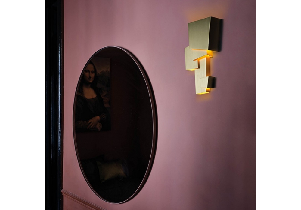 Map 1 designed by Eric de Dormael for DCW Éditions is a wall lamp with body made of steel and natural brushed brass. Large version in varnished brushed brass.