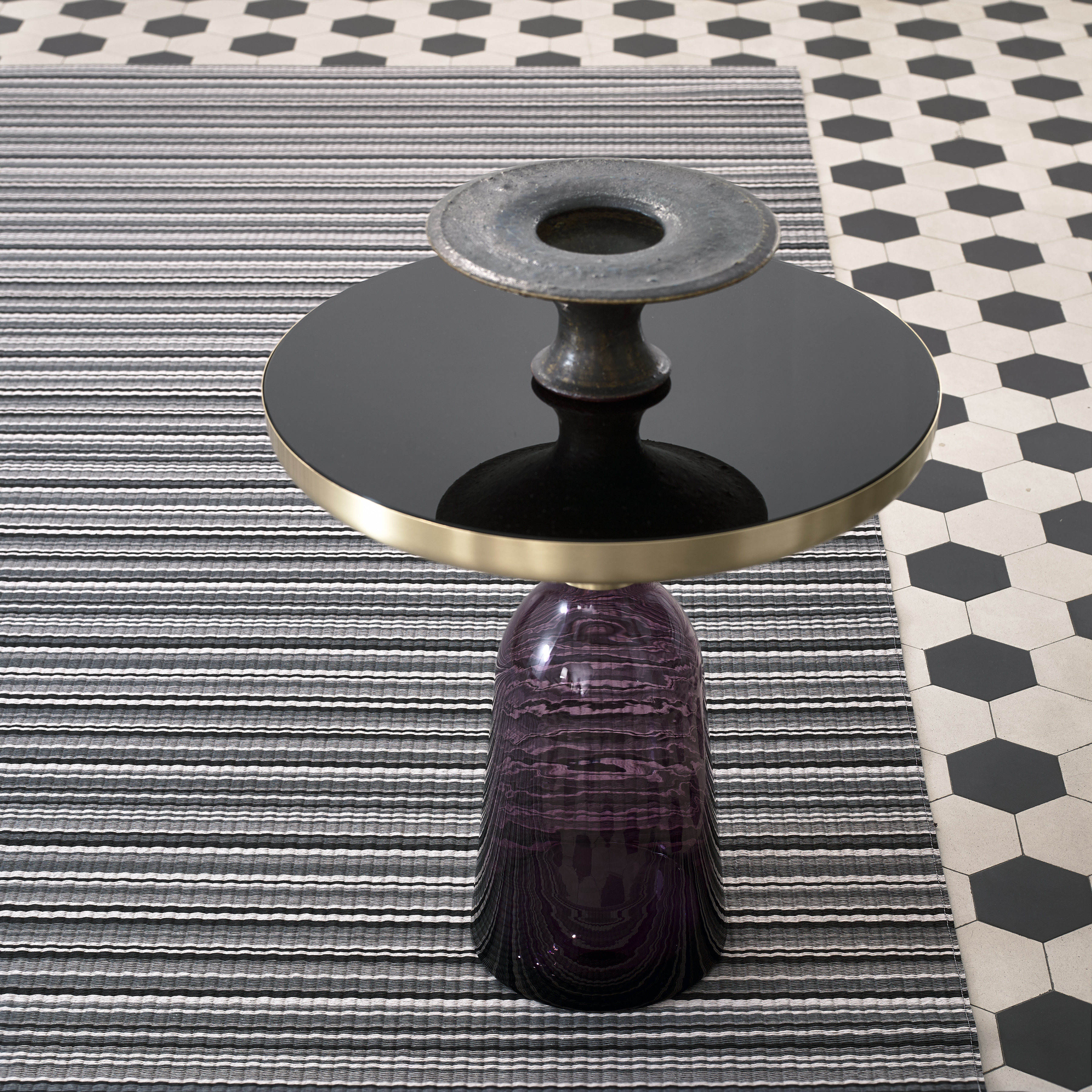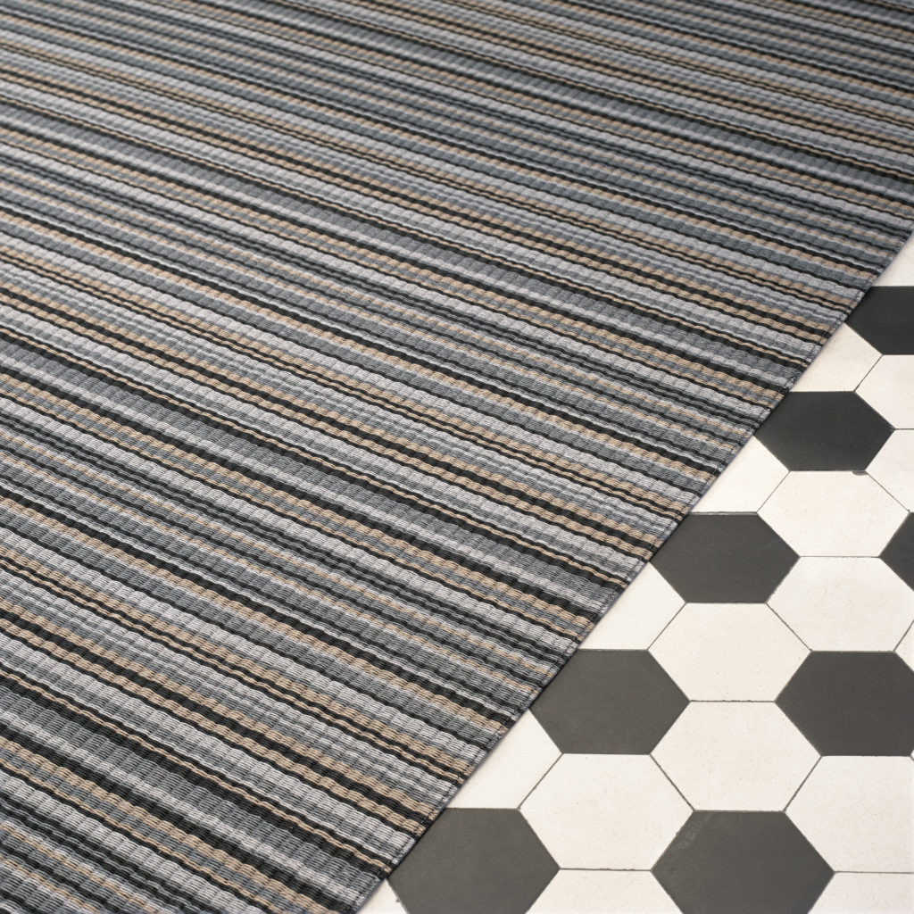 Midsummer is a multicolor striped Woodnotes paper yarn carpet.