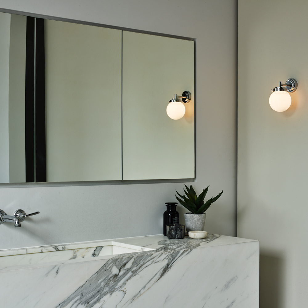 Expanding on our Globe Pendant range, this new Mini Globe Wall Light integrates the same Art Deco cues within its metal fixtures and features a compact (120mm) glass globe, hand blown in our UK glass works. Whether using the opal, anthracite or seedy glass, this wall light is the perfect addition to a bathroom, bedside or hallway.