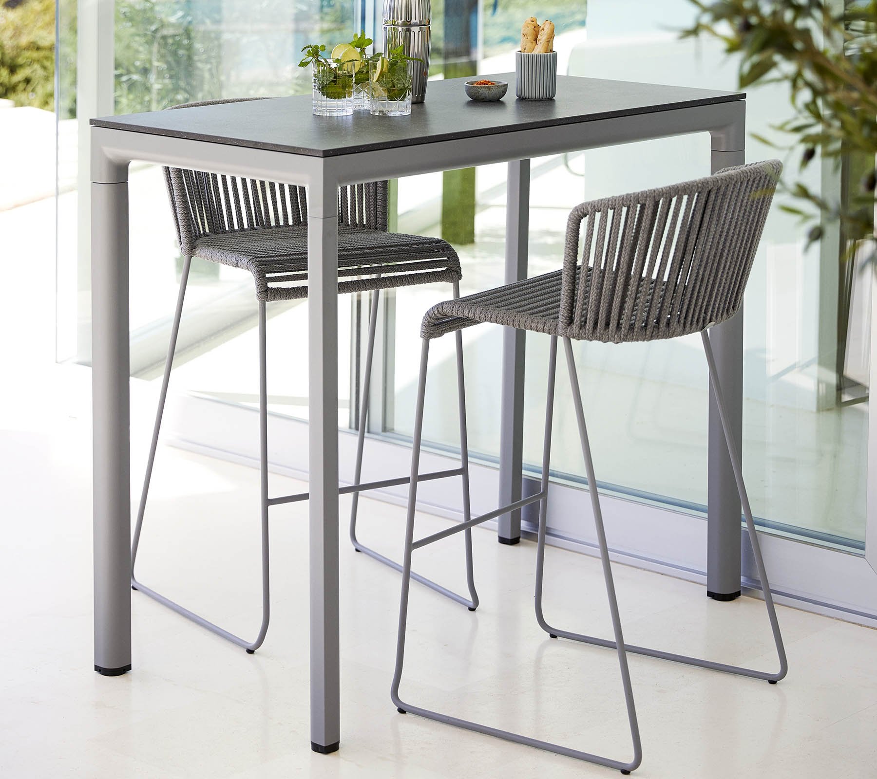 The Moments bar chair is designed by the Danish designer duo Foersom & Hiort-Lorenzen MDD. Moments is the essence of Scandinavian, minimalist design with a high level of comfort. The bar chair is beautiful from every angle by virtue of its light, elegant and transparent design. Moments are made of weather-resistant Cane-line Soft Rope.