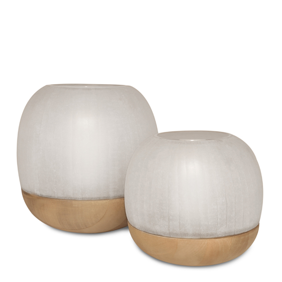Mouthblown glass/hand-cut surface, Hand-Carved Wood
