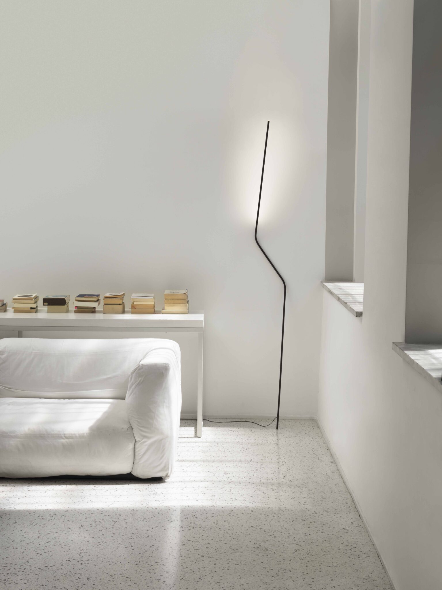 The Neo floor lamp by Nemo boasts a uniquely ascetic design – it couldn’t really get any more minimalist than this! The luminaire, designed by Bernhard Osann, consists of a slender, slightly angular metal frame complete with an LED light source hidden at its end, which can be adjusted to face the room or the wall to create either direct or indirect lighting. The luminaire is designed to rest against a wall and has a convenient floor switch from which the lighting can also be dimmed.
