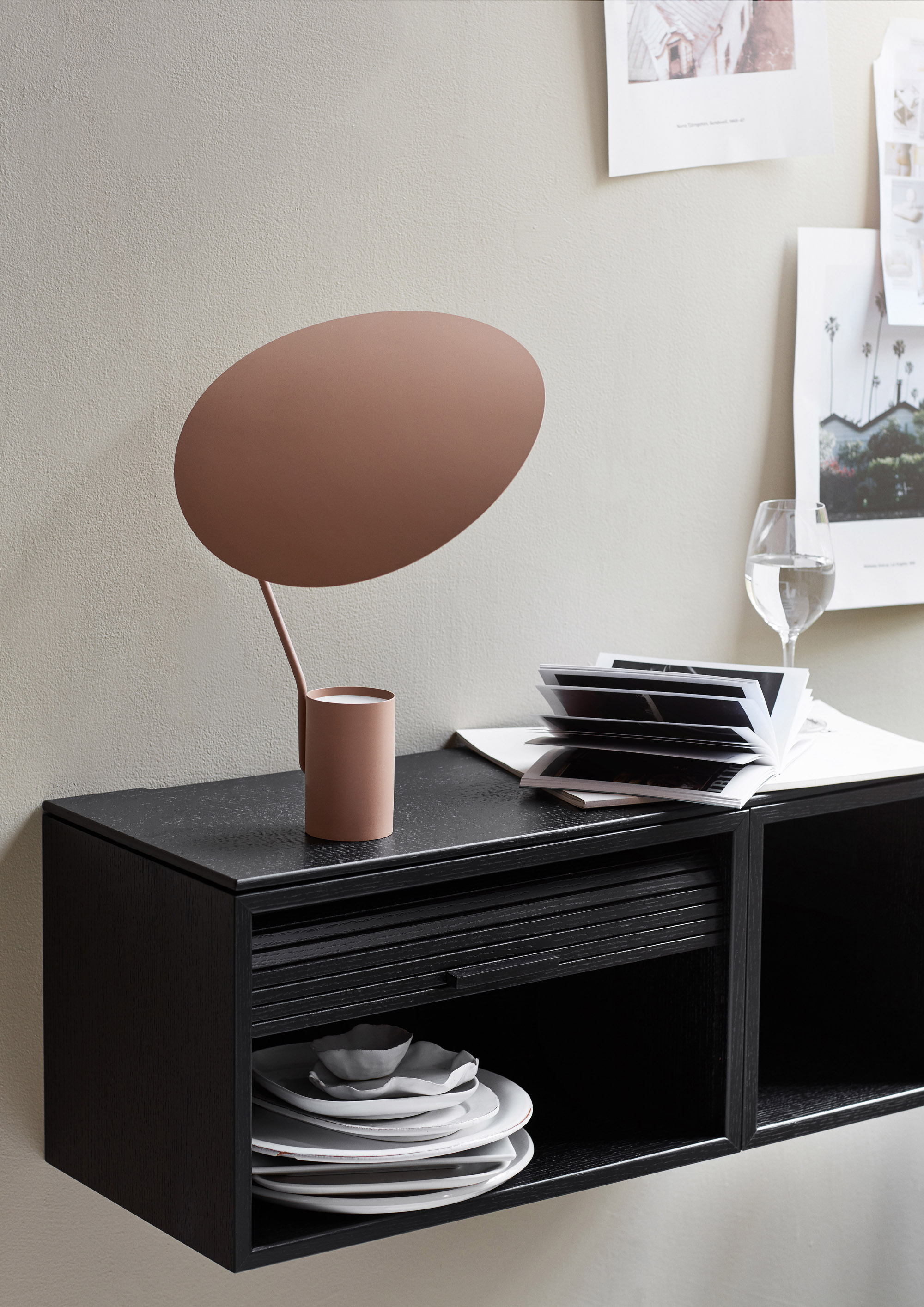 Ombre is a multifaceted design, comprised of a compact base, a LED light source, and an adjustable shade. Ask the designer about Ombre’s essentials and he’ll explain that there are only two: shadow and light. The interplay between them starts with the light source, which projects white light upwards from the base directly onto the shade. Inspired by the shape of a tree leaf, the adjustable shade captures the light in its contours and reflects it onto the surrounding surfaces. The base and shade are made in steel and seamlessly powder-coated in matt black or beige.