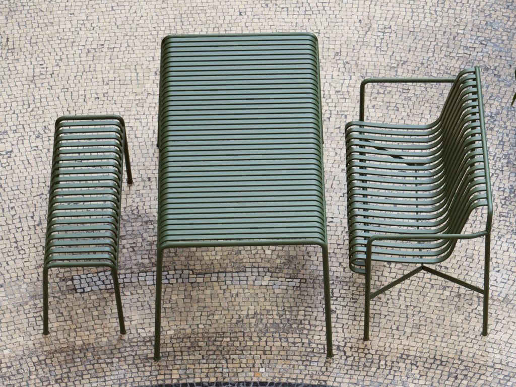 Palissade is an outdoor bench by Ronan and Erwan Bouroullec that is designed to fit a wide variety of environments including cafés, restaurants, gardens, terraces and balconies. The construction allows each bench to be strong without being bulky and elegant without being fragile.