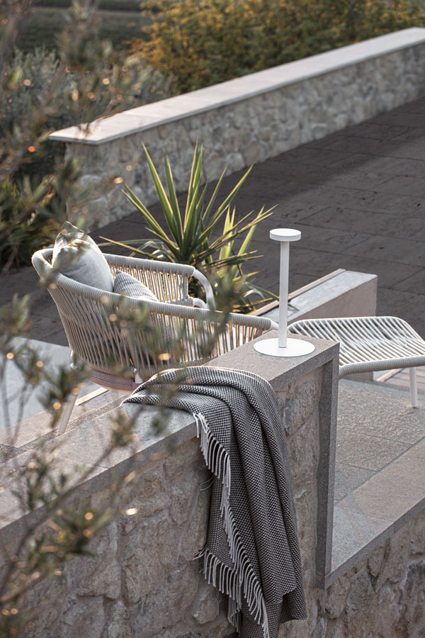 An elegant seat shell in white or graphite aluminum is covered with a woven weave of ropes similar to textile fibers. The Pleasure 2.0 Collection with its natural and soft appearance gives refinement and comfort to any place.