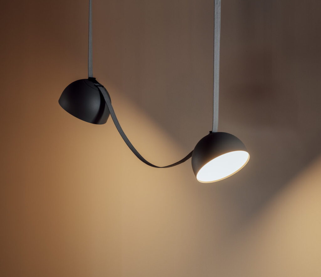 Plusminus is a versatile lighting system that takes the concept of the light rail to a new level. The conductive textile ribbon at its core allows for free placement of the luminaires and the creation of unique light solutions on the spot.