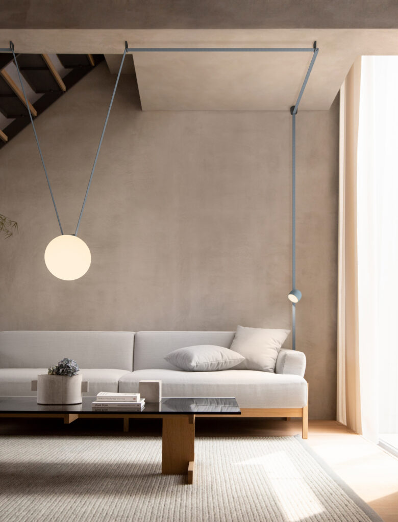 Plusminus is a versatile lighting system that takes the concept of the light rail to a new level. The conductive textile ribbon at its core allows for free placement of the luminaires and the creation of unique light solutions on the spot.