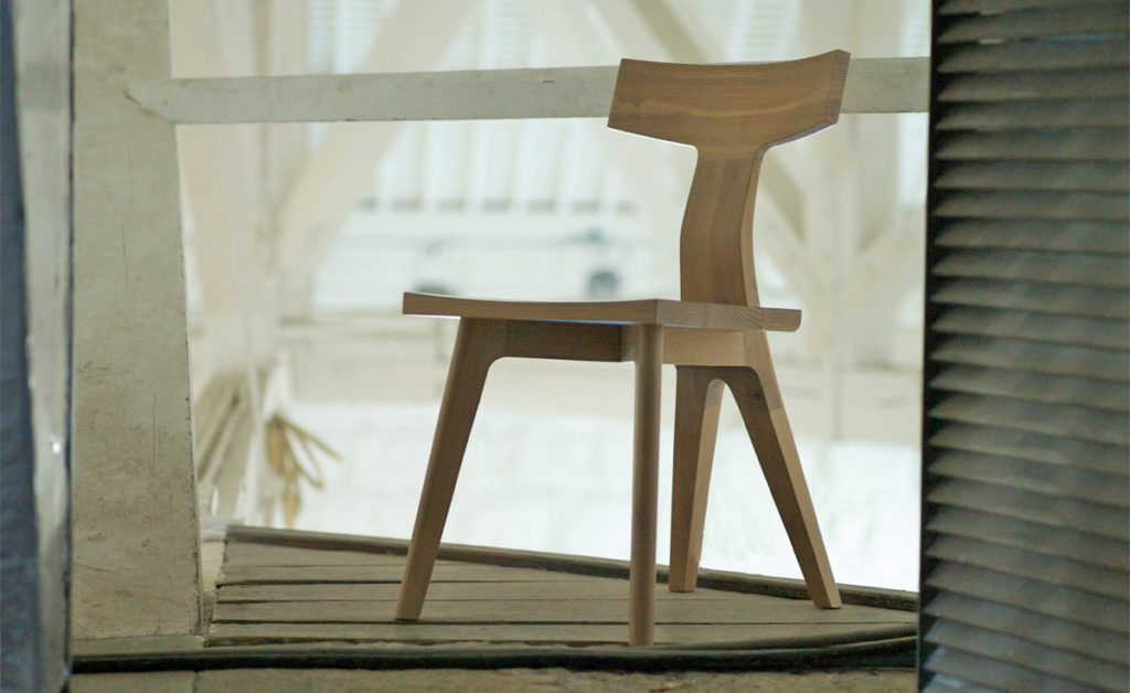 Fin Dining Chair is an iconic Matthew Hilton design, its sculptural solid wood form rigorously engineered and detailed for beauty from every angle. Particularly stunning from behind, Fin is named for the shape of the backrest which emerges from the legs as a fin from the sea.