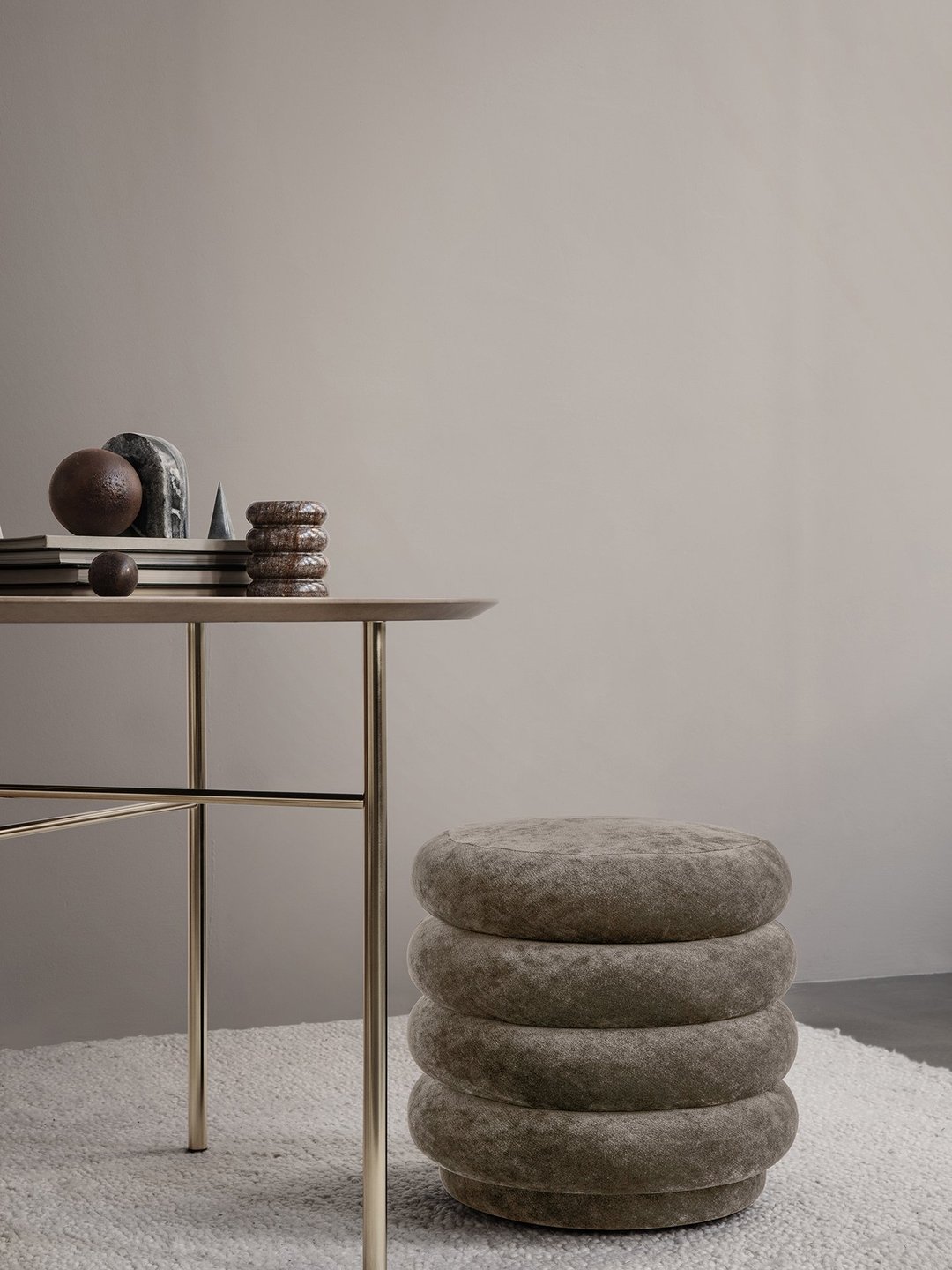 Contrasts are not only captivating to the eye but will also bring engaging dimensions to a room. The poufs with two levels form a graphic element, which combines softness with a modern interior. The rounded lines shape the distinct design in line with our fascination of geometry and emphasise its simple and natural form, producing a more organic expression in your home. The poufs are made of high-quality faded velvet, creating an exclusive and durable seat..
