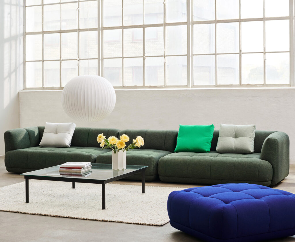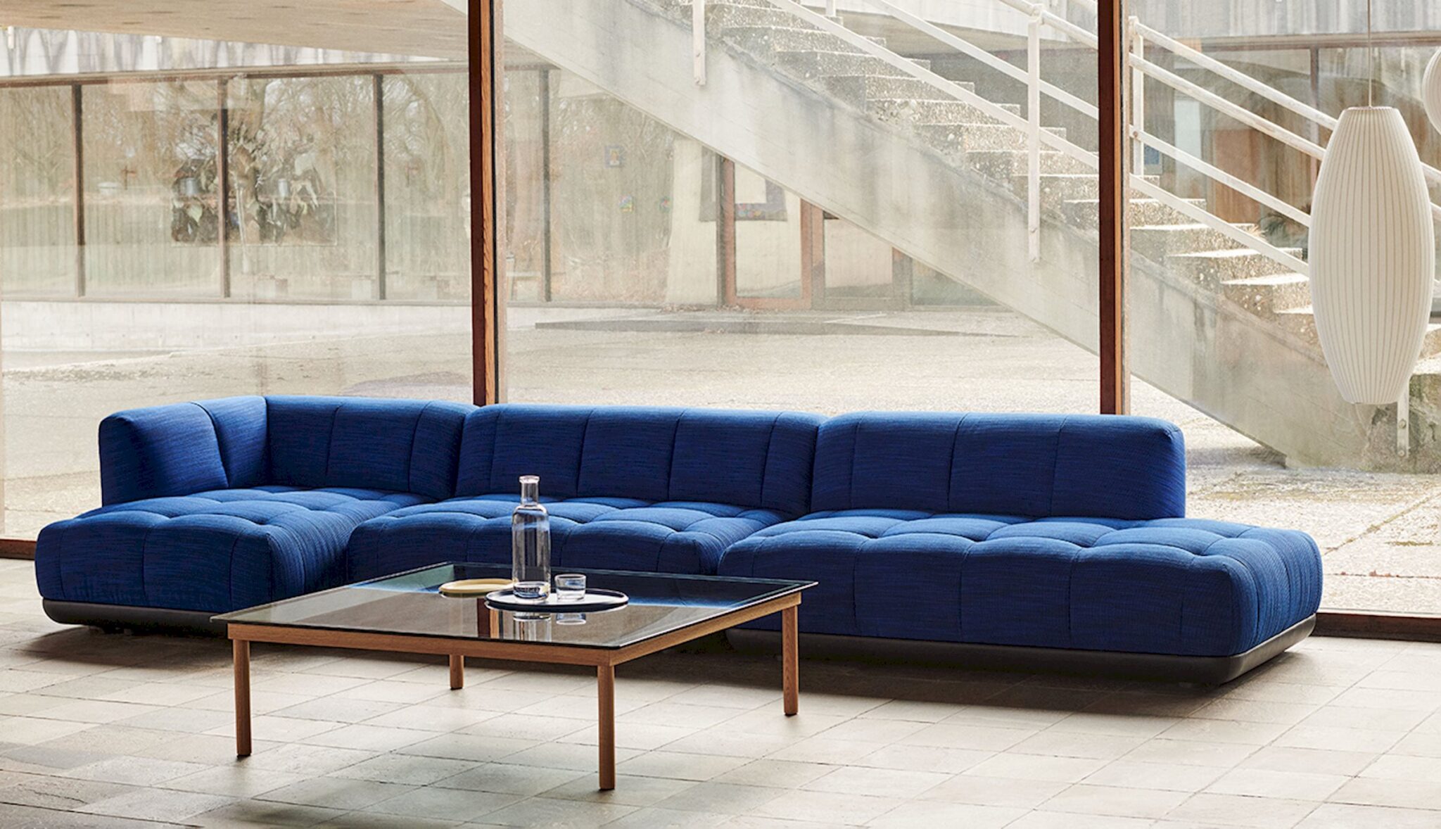 Described by the designers as a ‘quilted landscape sofa system’, Quilton serves as a central platform for living, working, socializing and relaxing. Offering a wide assortment of different modules, Doshi Levien’s multi-functional sofa provides the flexibility of a modular system with generous dimensions and sculpted forms. Its numerous upholstery choices include mono, duo, or with a black contrasting platform, with the finely-detailed quilted upholstery encapsulating the softness and volume of the foam and wadding seats and creating exceptional comfort. Quilton takes sofa design to a new level of versatility that makes it suitable for a wide range of domestic and public spaces.