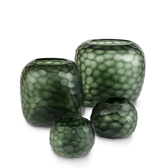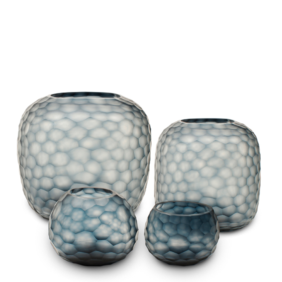 over centuries. Each piece shows the variable traces of human work on its surface, creating interplay between sculptural form and texture. More specifically, the design of glass objects combines these aspects with a nuanced and strong color impression, leading to a smooth and natural appearance. This allows them to integrate well into any architecture, while remaining something special and magic at the same time.