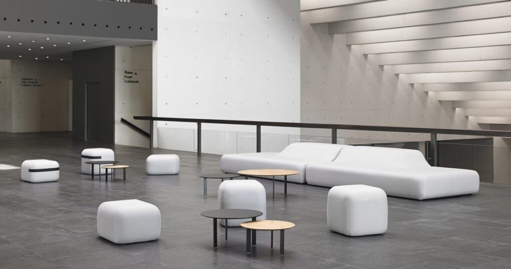 The comfortable and versatile Season Pouf, designed by Piero Lissoni, is ideal for collaborative spaces, offices, hotels and educational centers that seek a modern touch for their space. Season Pouf can be used as a footrest or as an independant guest seat. The pouf can include hidden casters, electrification options, and a handle which facilitates its transportation. With a playful character and a friendly design, Season Pouf has multiple combinations for home and working environments. Includes a high resistance technical fabric at feet height which avoids marks or scratches.