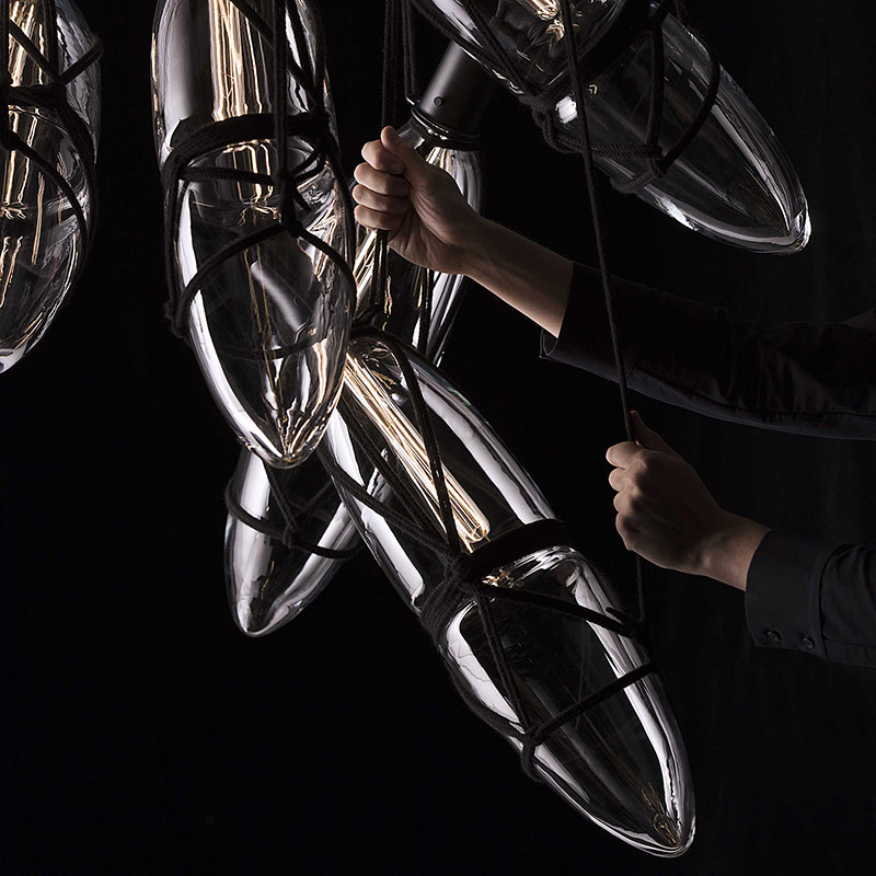 Shibari is not just the technique of tying up objects with ropes, it is a method of communication within a hidden system of lines and loops. The Japanese call it Kinbaku: the beauty of tight binding. This sophisticated collection places crystal centerpieces amidst the knots to draw our attention and create variable compositions.