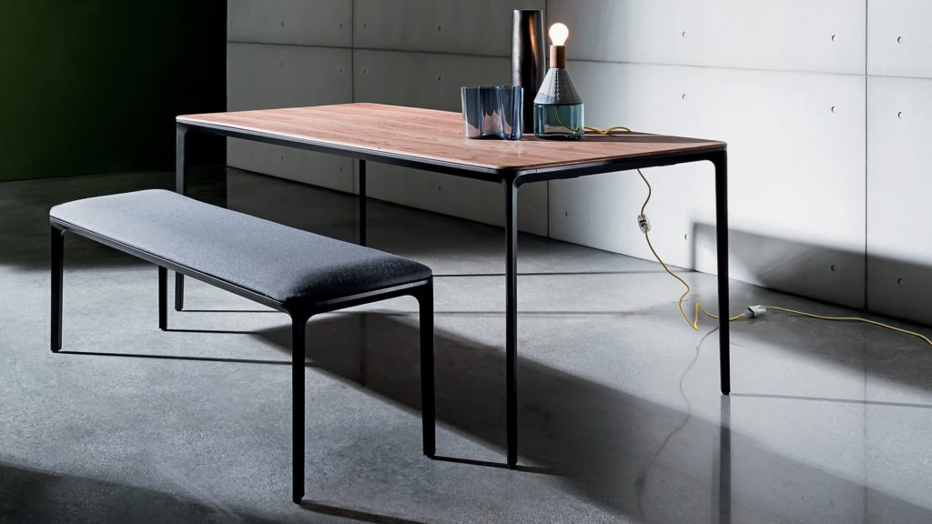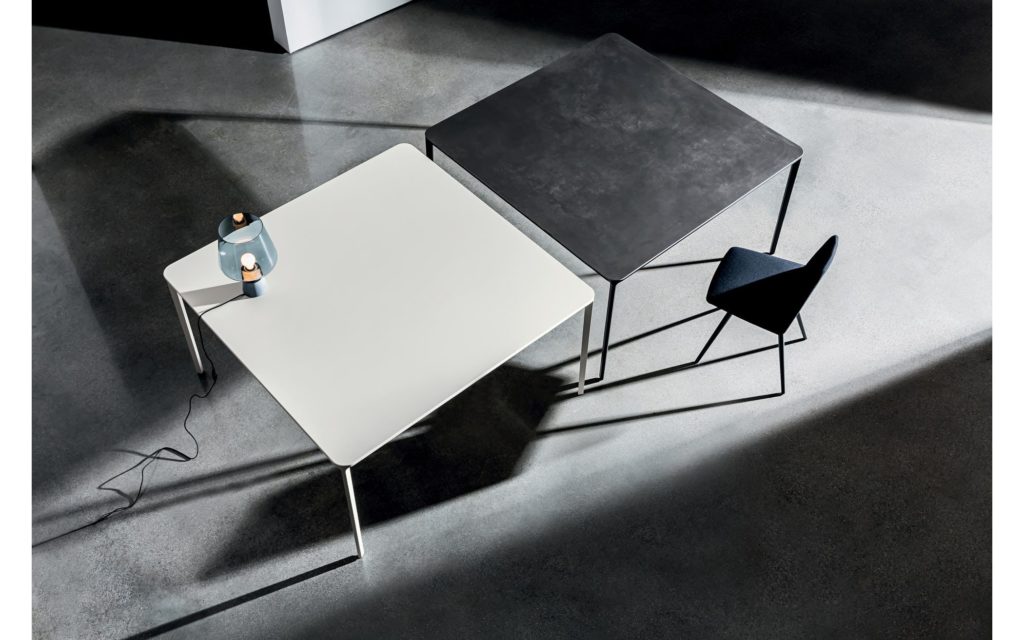 Tabletop : Glass in various shades, MATERIA in black/white, Ceramic in various shades, Wood in various shades, HPL in black/white