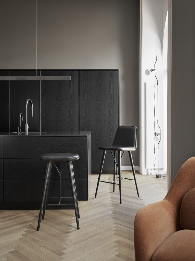 Spine is a series of chairs and barstools designed with a great attention to materiality, and a mixture of both classic and unorthodox design details. With a dynamic look, the series evolves around a straight seat, designed to bridge the comfort of a fine dining chair, with the openness and social invitation offered by a traditional barstool.