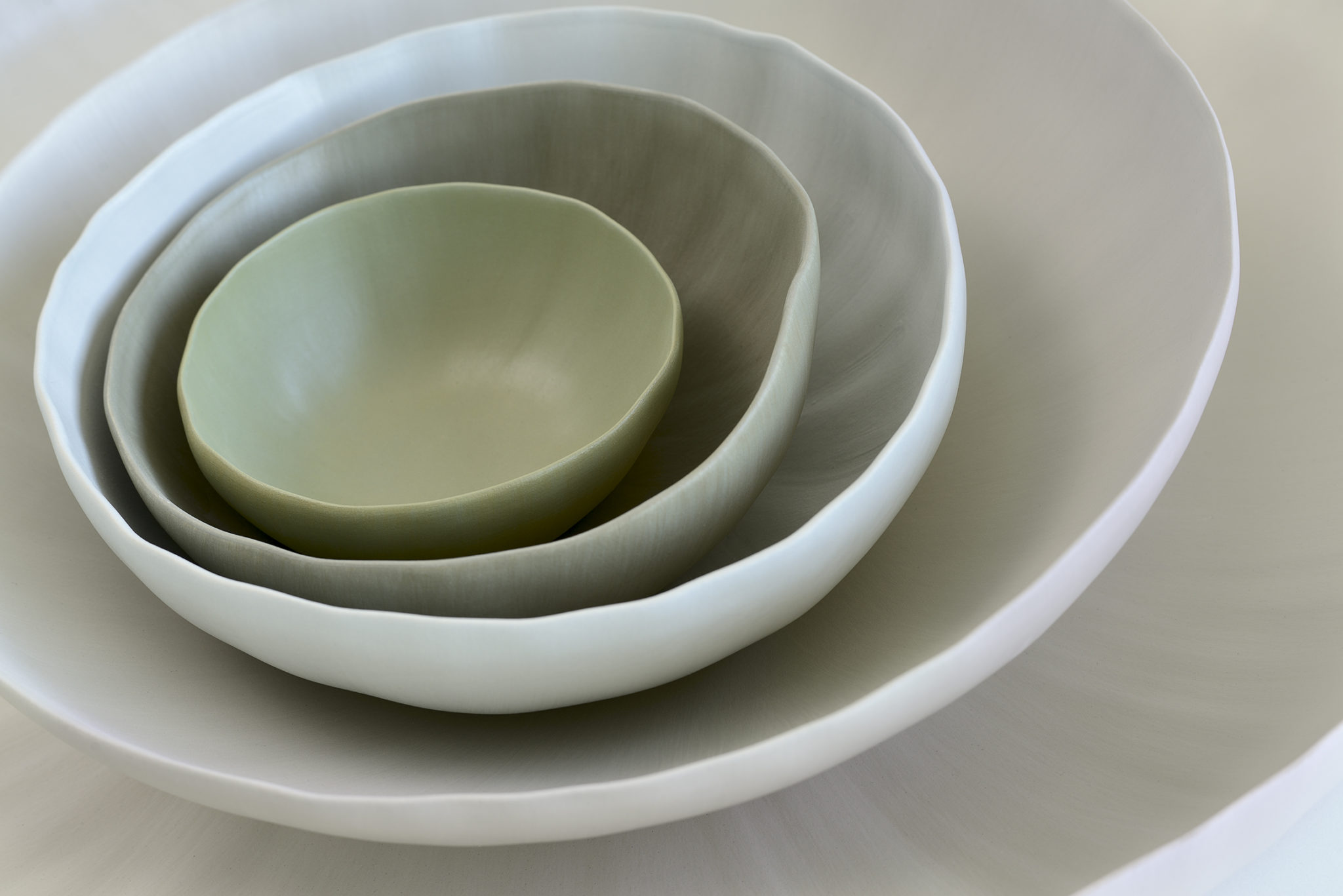 Since 1980, Rina Menardi has been developing her research in the field of ceramics, personalizing work techniques, exploring color schemes, and striving for neatness of shape. Through this work, she has been creating her first collection of living accessories, all hand-made stoneware pieces, always characterized by simple lines, inspired by nature, removed from the style of so many mass-produced items, and never limited to a single purpose, believing, as she does, that an object should not impose itself, but rather suggest visual and tactile sensations able to evoke our deepest emotions. Rina molds the clay without ever feeling like a tout-court ceramist. She chooses baked clay because she senses in this material the possibility to express herself through gaining possession of some of nature’s secrets, understanding her laws, and respecting her rules and limitations.