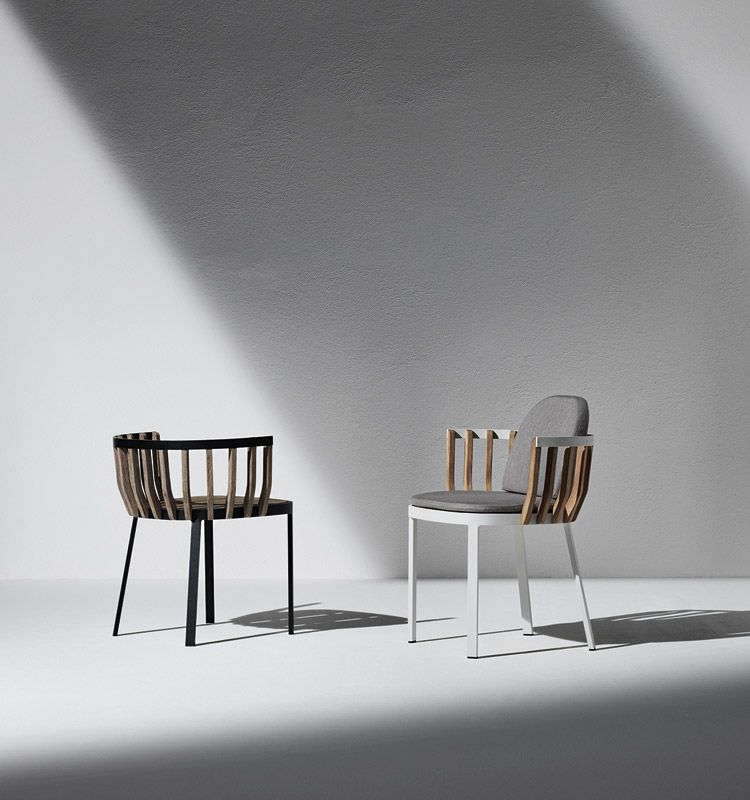 Swing Dining Armchair w Sepia Black Aluminium Frame & Pickled Teak Slat by Patrick Norguet.