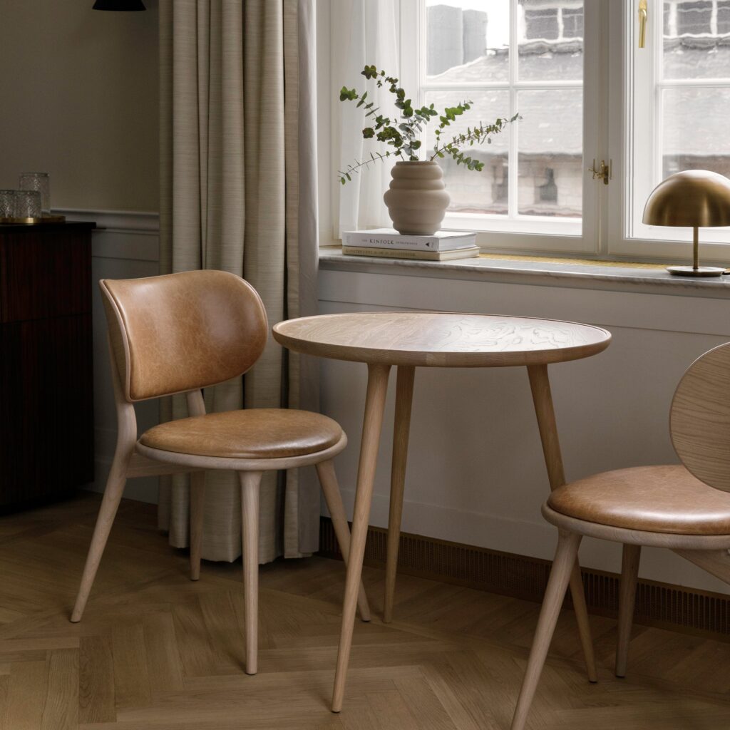 The Dining Chair designed by Space Copenhagen. The Dining Chair builds on High Stool’s beautifully fluid, sculptural and archetypal character, adding a generously rounded backrest for a heightened sense of comfort. The backrest itself is upholstered in soft durable leather and is fully supportive and comfortable so that it outweighs the need for armrests. When designing The Dining Chair, made from sustainably sourced wood, Space Copenhagen explored classic, simple and sculptural motifs. The collection is available in solid oak or beech wood with backrest steam bent in veneer. The wood is sustainably sourced from well-managed forests, honouring the UN Sustainable Development Goals of protecting “Life on Land” (SDGs 15) and “Responsible Consumption and Production”