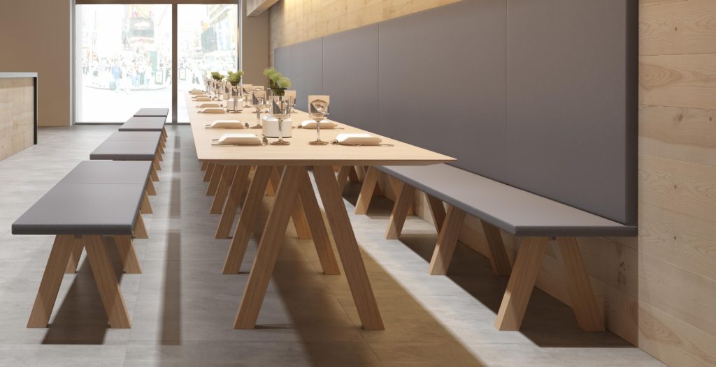 With his usual elegance, John Pawson surprises us once again with this bench and table of exquisite proportions. The table top is available in different sizes, along with a new 120 cm width. Ideal both for residential and for waiting areas, restaurants and corridors in smart public spaces. Now there is the new counter version to work at a medium height.