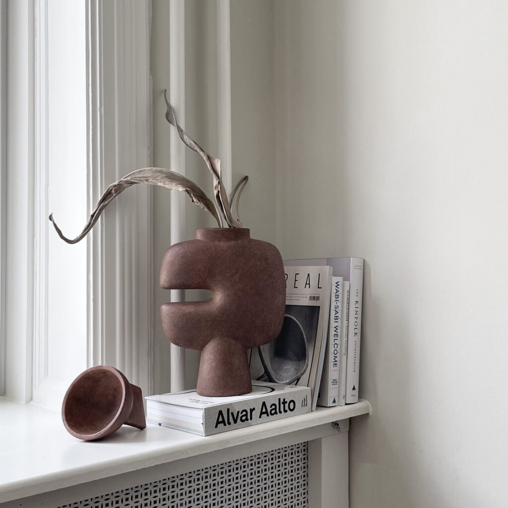 The Tribal collection is a series of vases designed as a sculptural take on the archetypal idea of a tribal mask. Place single flower stems in the narrow top opening or simply leave the vase as a standalone art object. Like open mouths on pedestals, the masks are a beautiful shaped item in calm, soothing and dusty terracotta and grey colours. As it is a hand glazed natural product, the colours may vary slightly and while it is not 100% waterproof, a bag for fresh flowers is included. Designed by Kristian Sofus Hansen & Tommy Hyldahl.