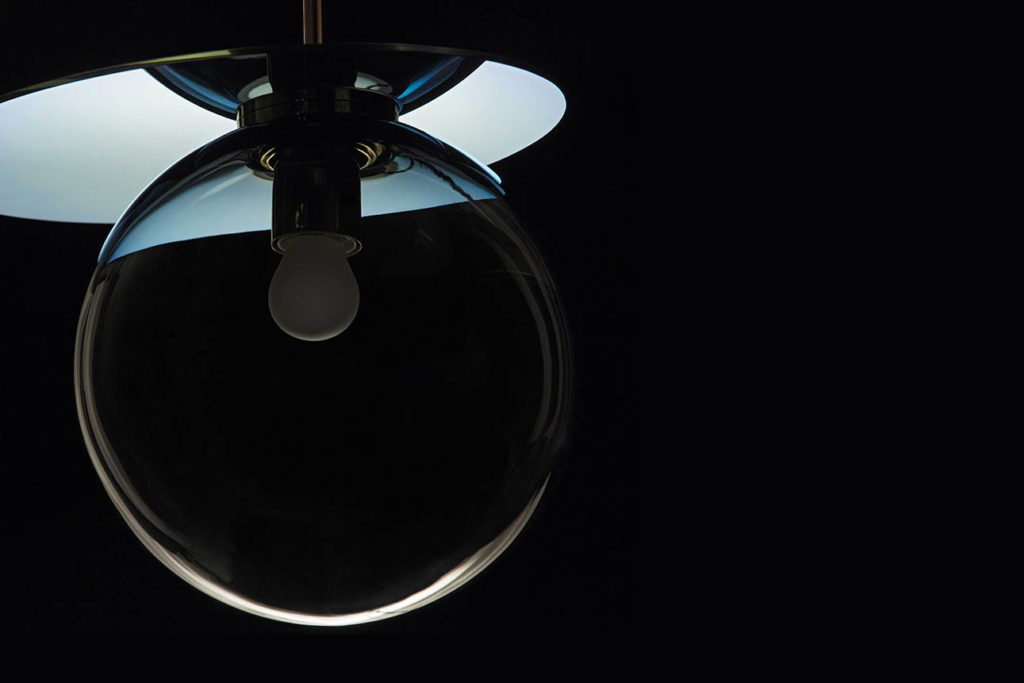 Inspired by the relationship between geometric objects and their shadows, the Umbra collection features elegant pendants in sophisticated detail. Its metal plate derives from the perfectly elliptical shadow cast by a side-lit ball, mirroring the colorful mouth-blown crystal piece.